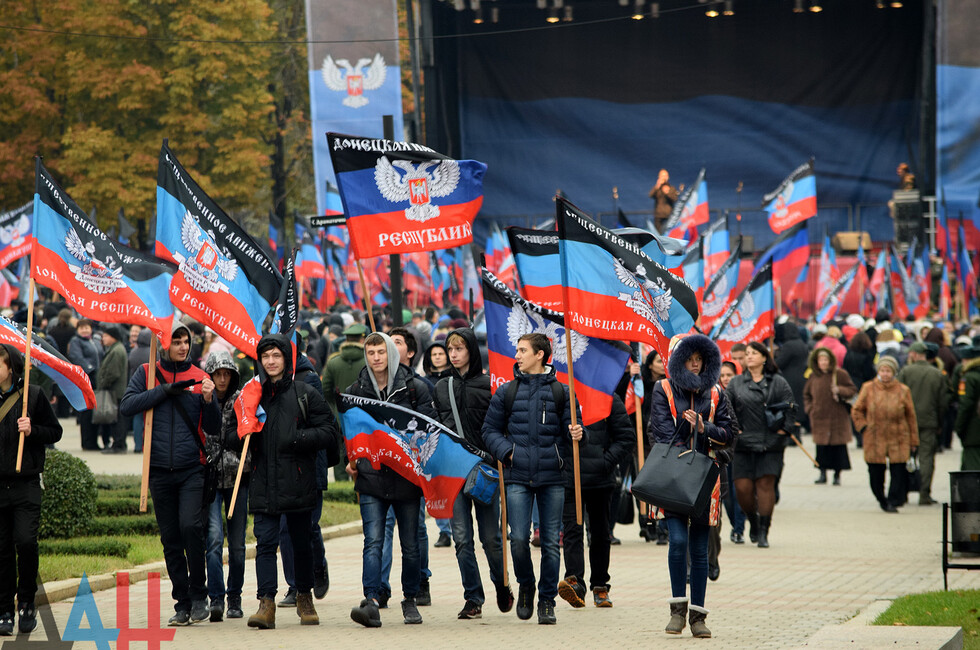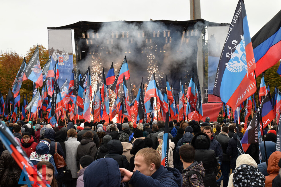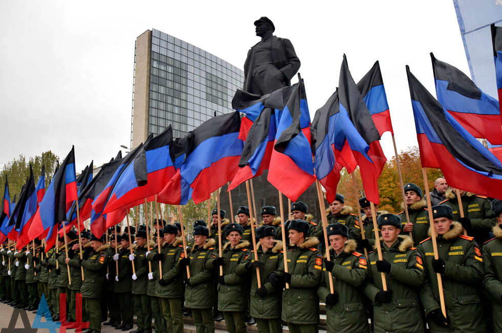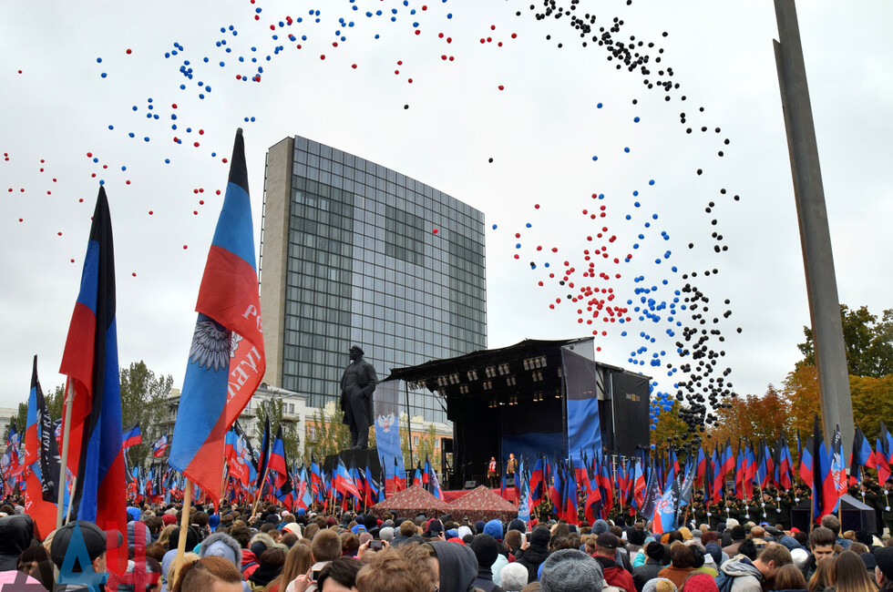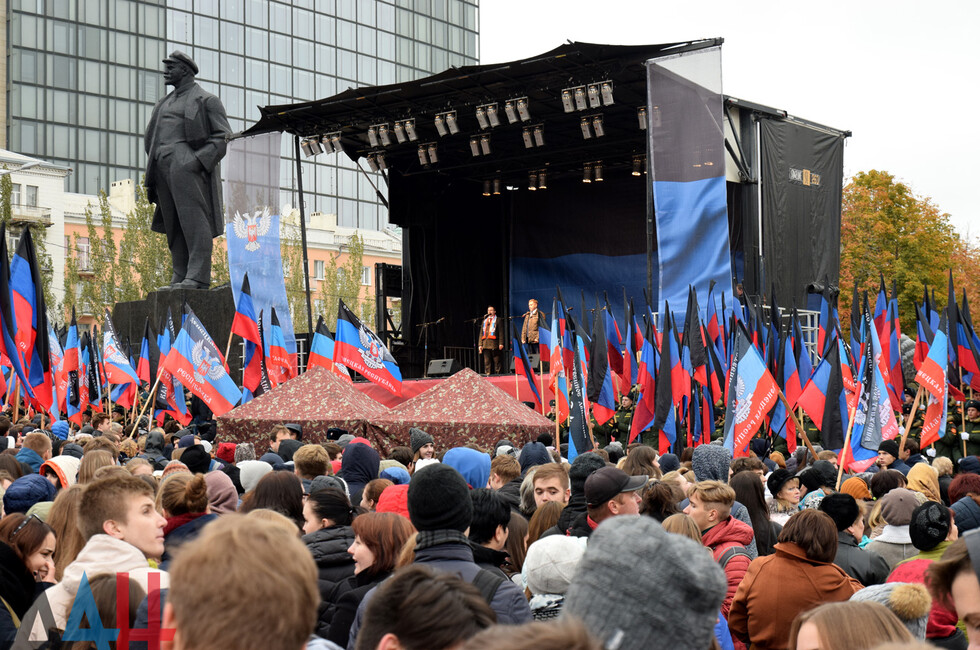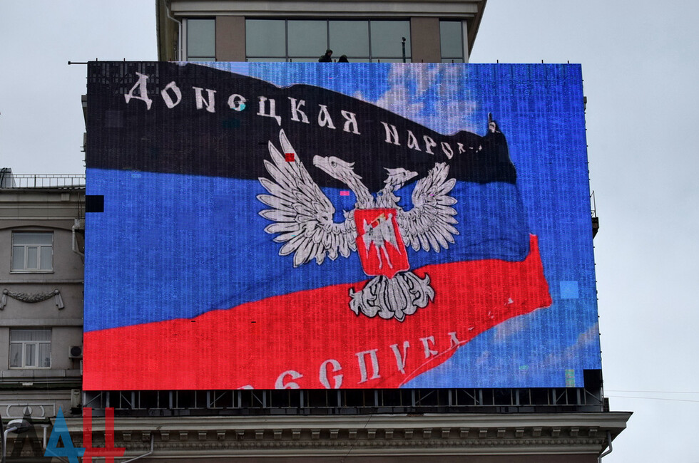 He ordered to unfold the 30 to 14 meters DPR flag, made in 2015, on one of the buildings surrounding the square, dozens of balloons with Republican symbols flying to the sky.