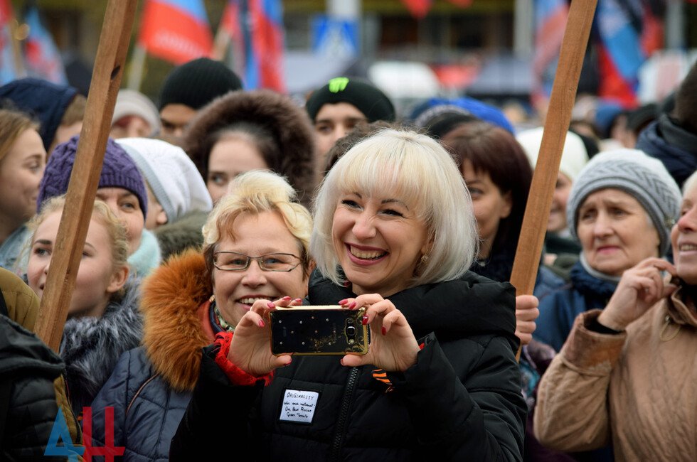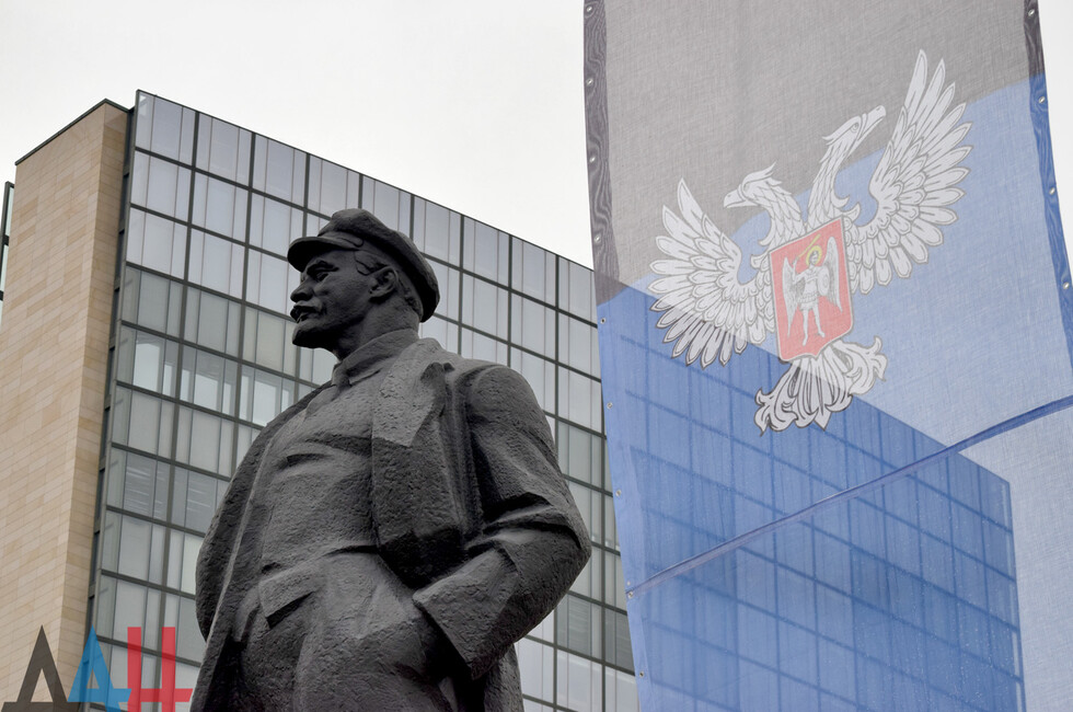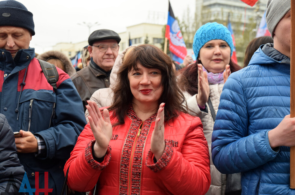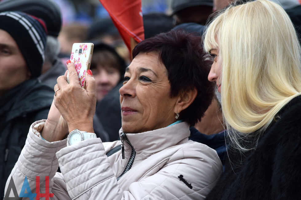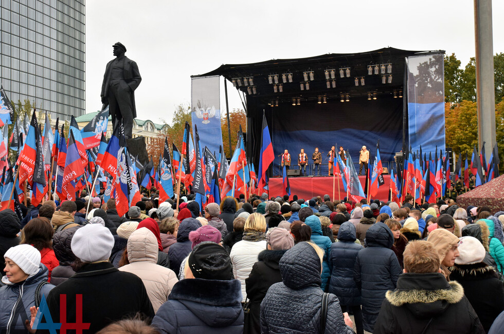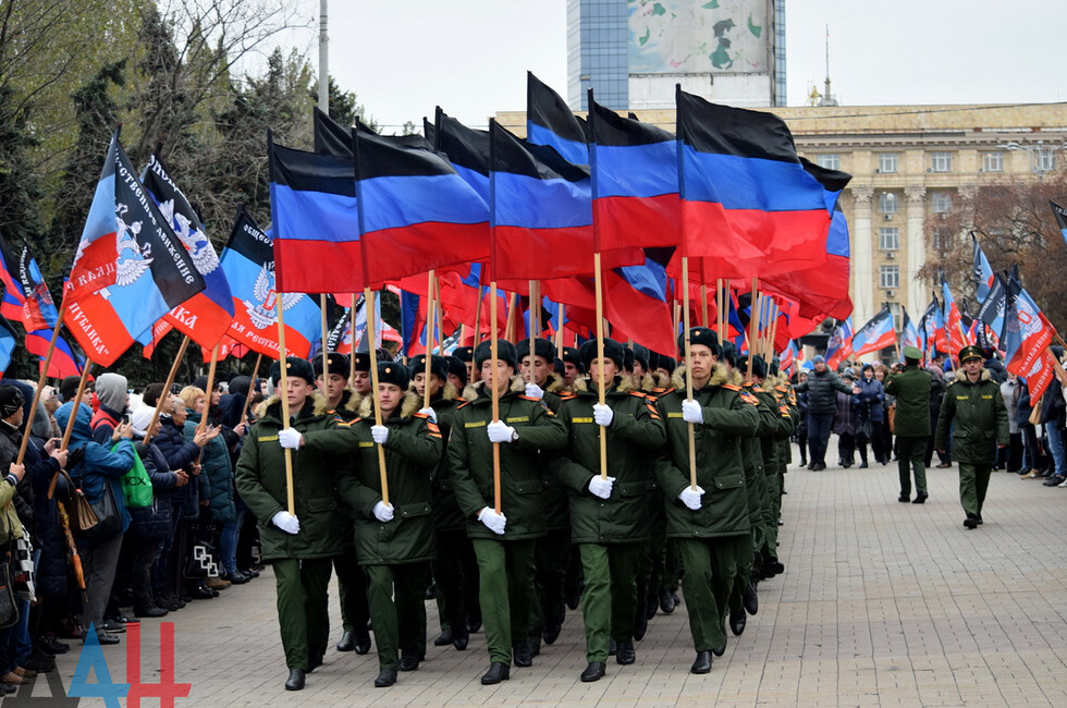He ordered to unfold the 30 to 14 meters DPR flag, made in 2015, on one of the buildings surrounding the square, dozens of balloons with Republican symbols flying to the sky.