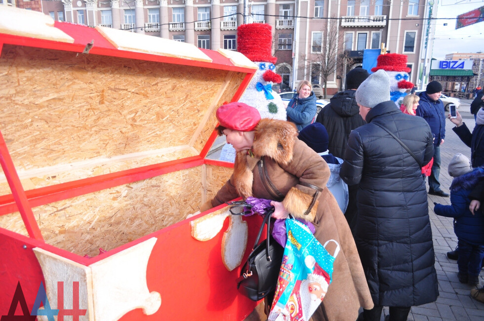 A magic chest was installed on the central square to collect presents for orphans. A lot of people were seen to donate sweets, toys and other gifts.