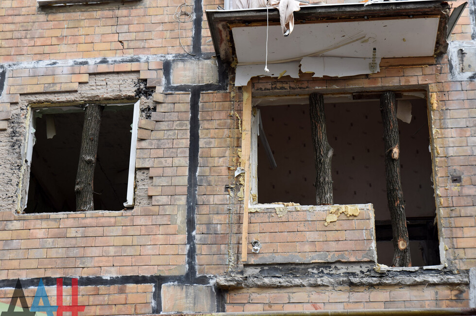 An explosion rocked a house on Krasnoarmeyskaya street 84 in Central Donetsk on October 26, injuring five people, including two small children. Preliminary reports said that a gas leak could have blown up a section of the house. *ot
