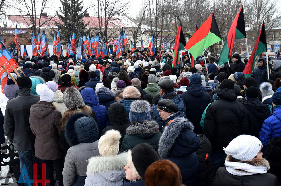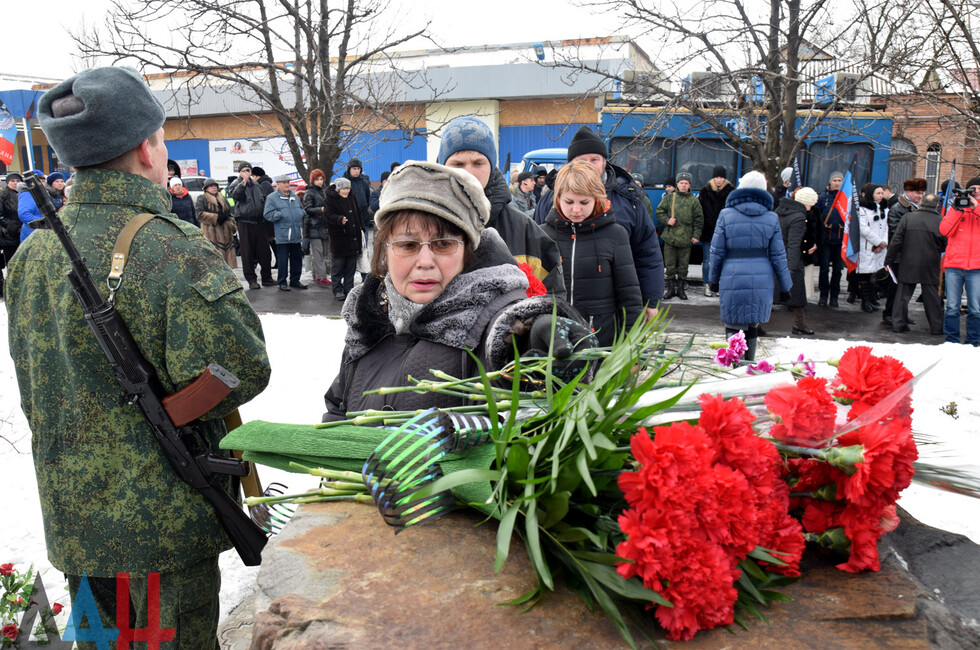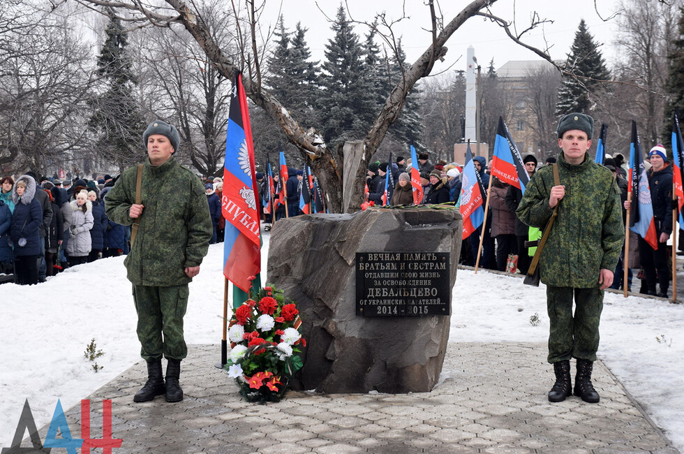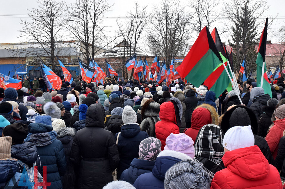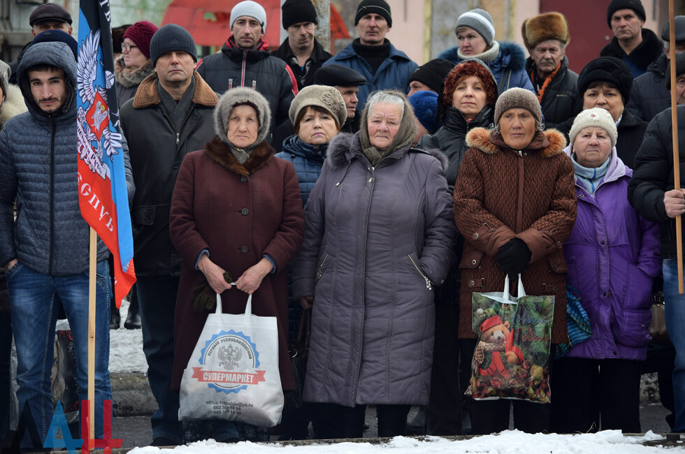 Donetsk, Feb 19 – DAN. A thousand DPR residents commemorated the fallen in the battle for Debaltsevo at the rally organized today in the town by the memorial "The stone to brothers and sisters killed by Ukrainian butchers in 2014-2015".