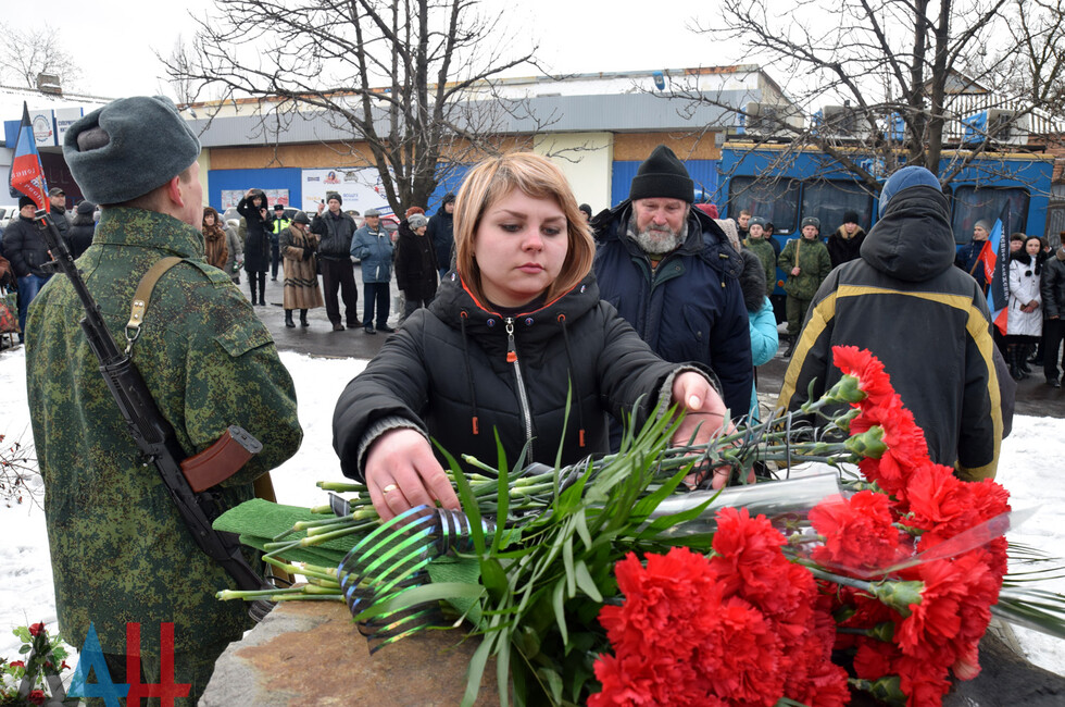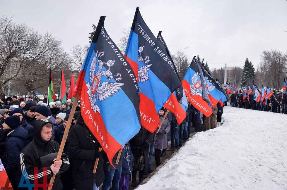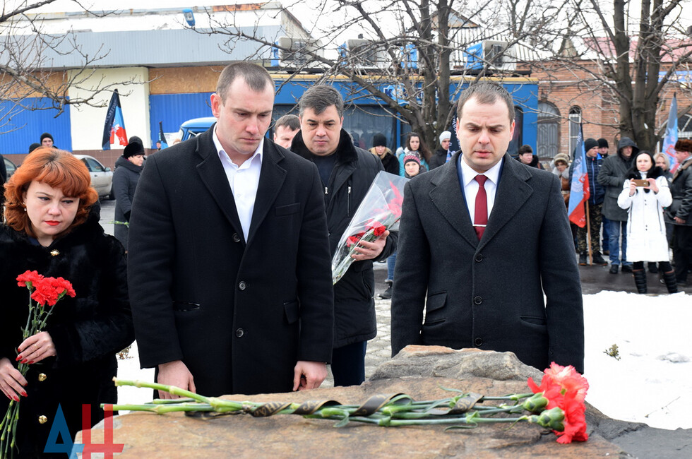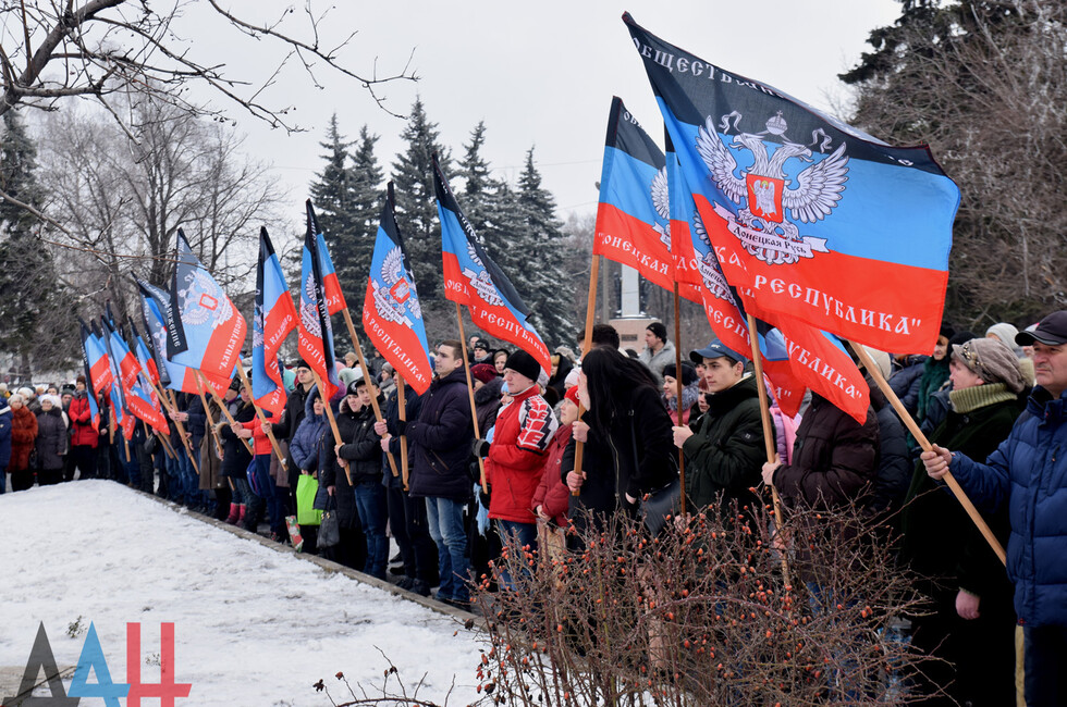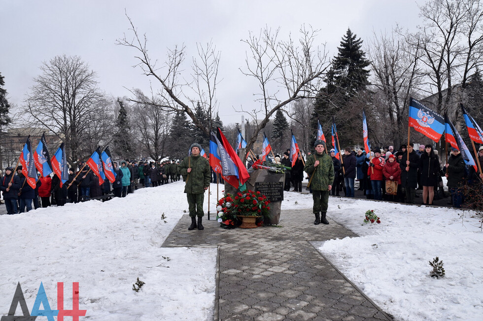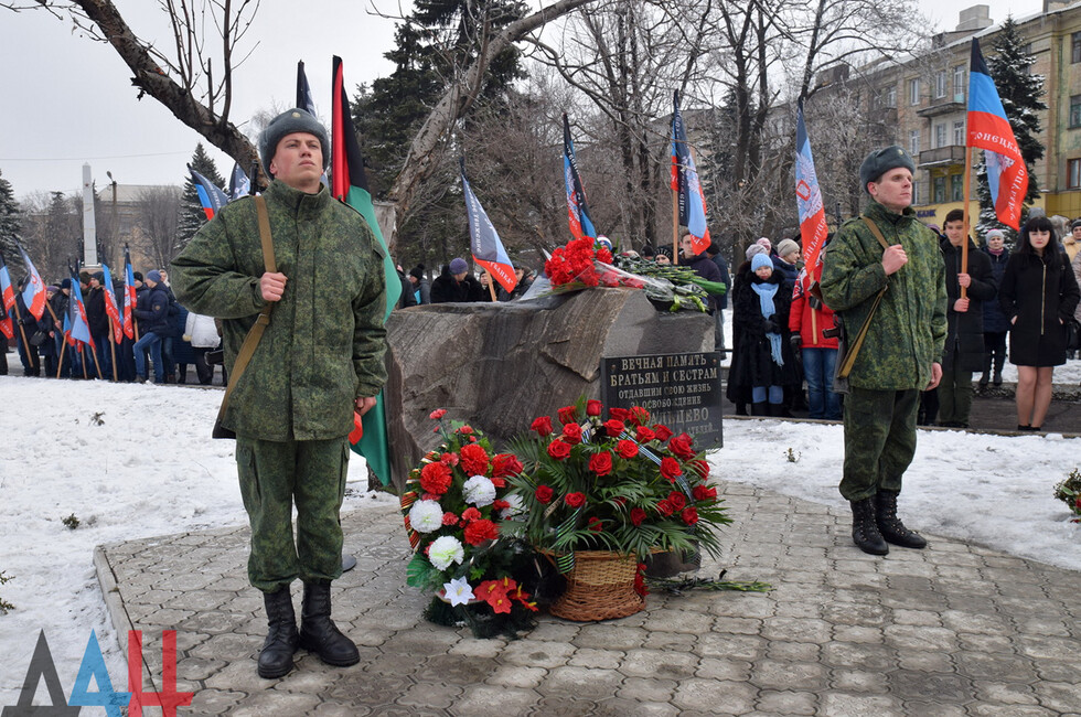 Donetsk, Feb 19 – DAN. A thousand DPR residents commemorated the fallen in the battle for Debaltsevo at the rally organized today in the town by the memorial "The stone to brothers and sisters killed by Ukrainian butchers in 2014-2015".