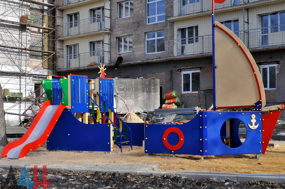 DPR officials also inspected the ongoing finishing and development and greening of the buildings premises. The exterior of the buildings is nearly finished. New windows were installed and the building were extensively remodelled. A children’s playground war arranged in the yard.