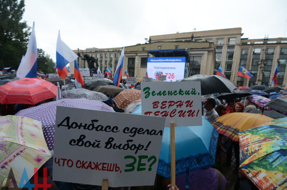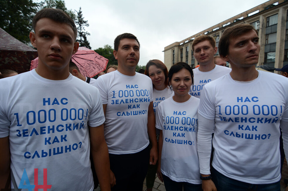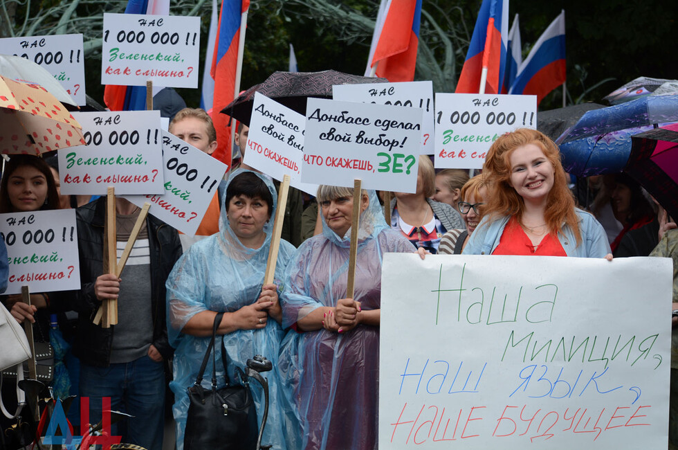 The organisers said that some 3,000 Donbass Choice activists had gathered in the park. The 1,000,000th benchmark signature was hailed with slogans “We’re one million, Zelensky, do you hear?”