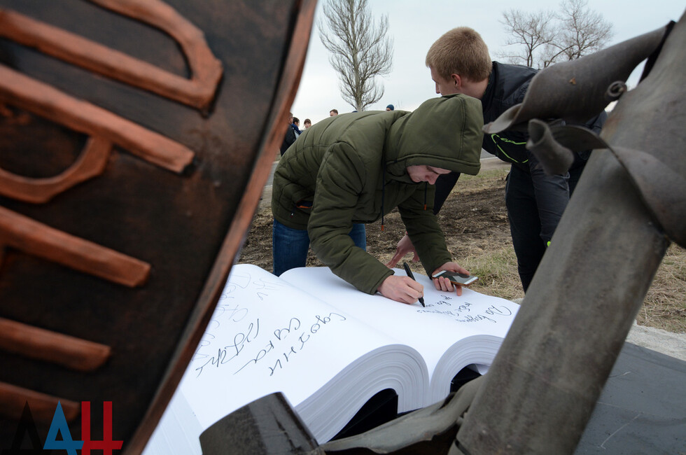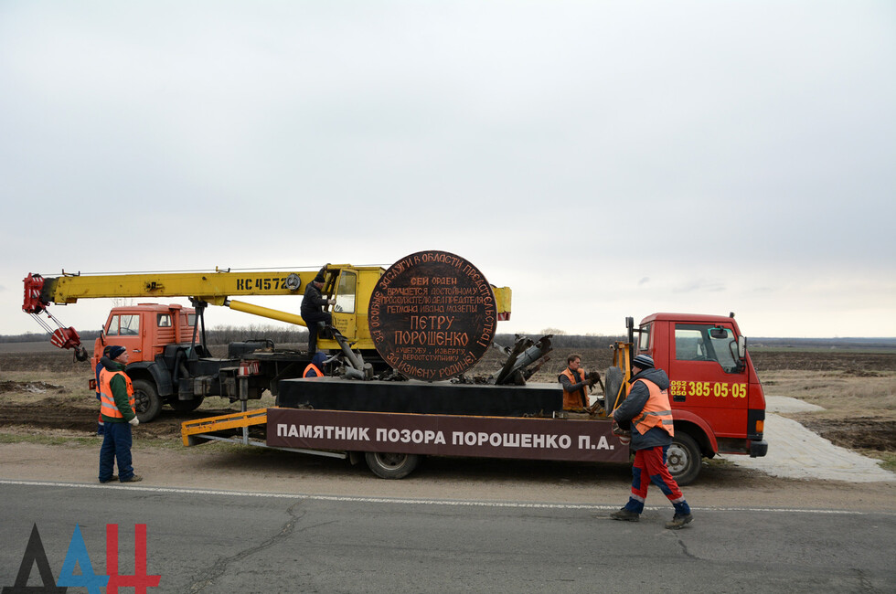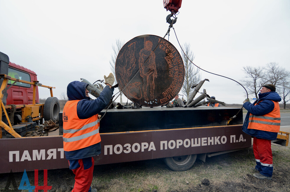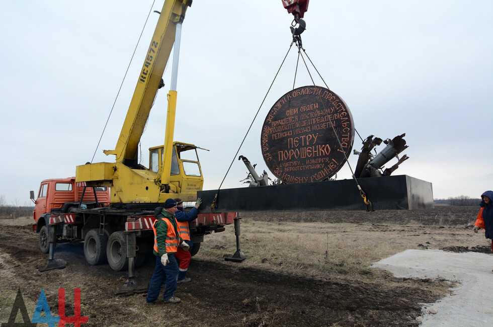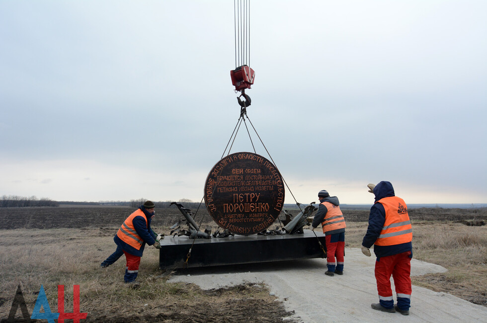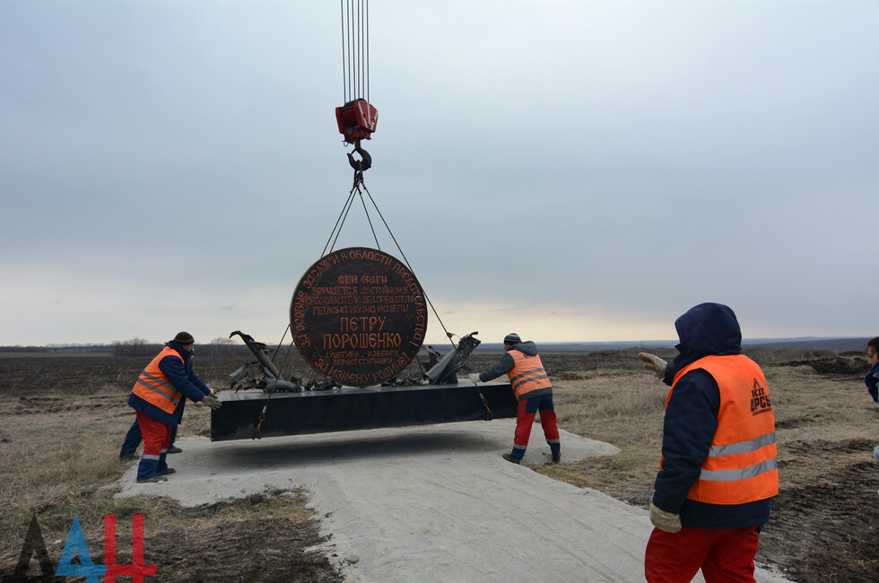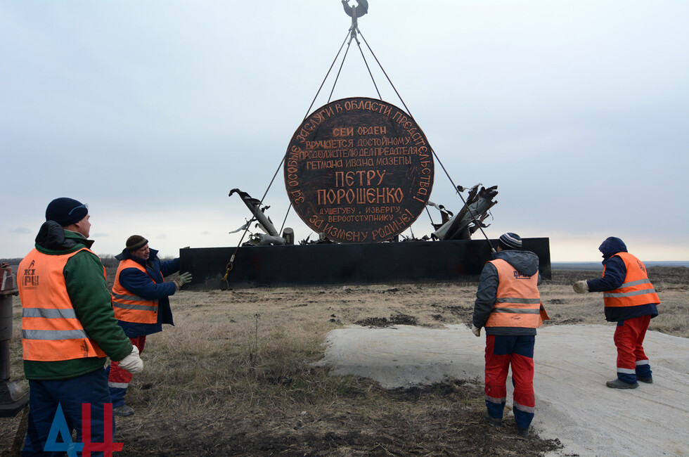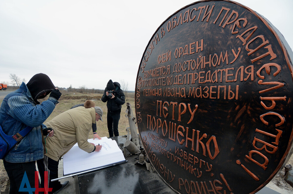 “This order has a tiny bit of each of us, our anger, blood and suffering,” Donetsk resident Olga Zhukova said. “This place was chosen as it is near the crossing point, and all those who return to our native Donetsk or go to Ukraine can see the “monument” to Poroshenko and his bloody regime.”