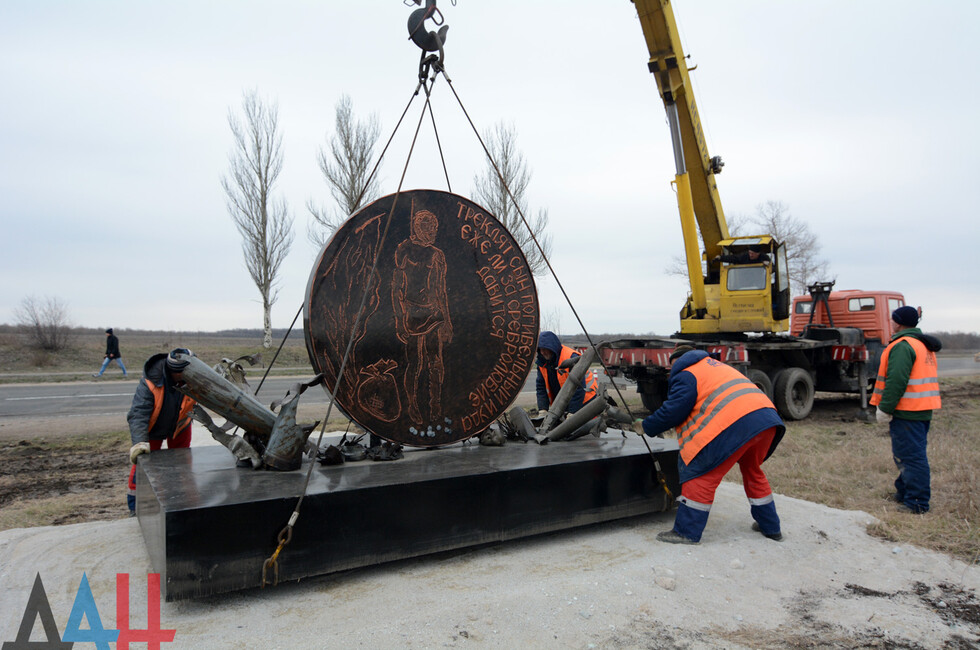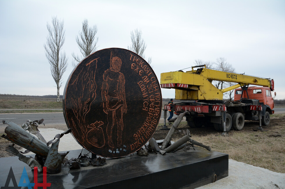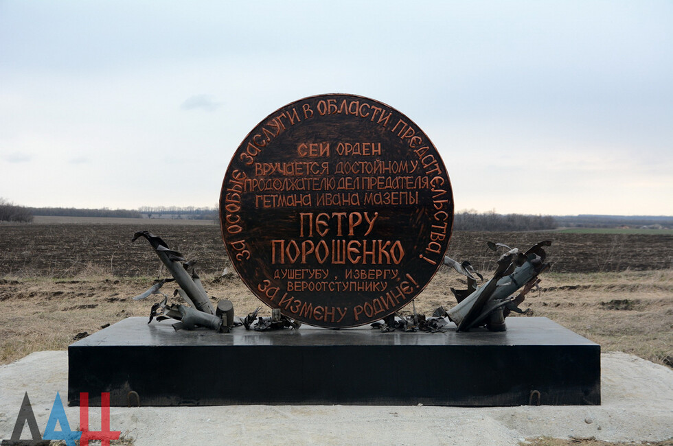Donetsk, Apr 2 - DAN. The “Order of Judas” for Ukrainian President Petr Poroshenko made from fragments of ordnance fired at Donetsk People’s Republic settlements has been installed near the Yelenovka crossing point. It will be on permanent display at this location south of Donetsk as a reminder of Kiev regime crimes.