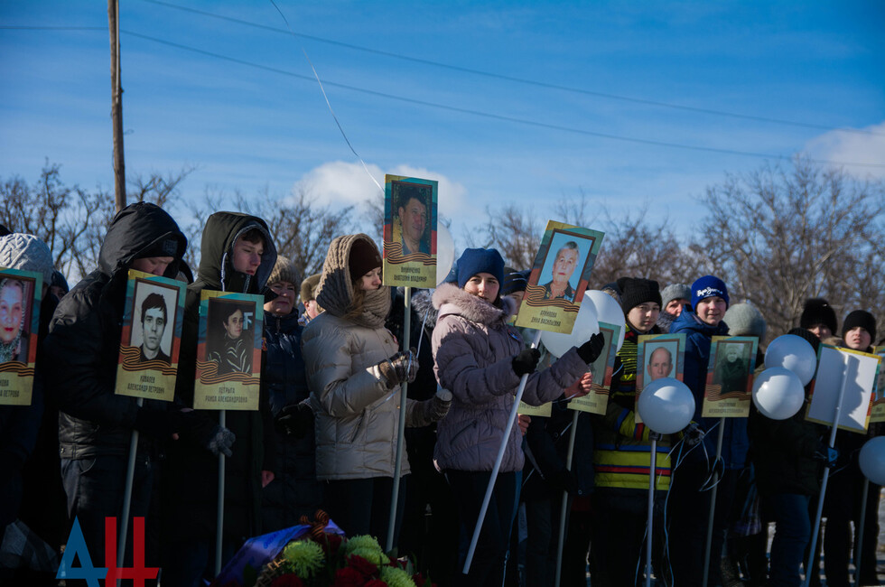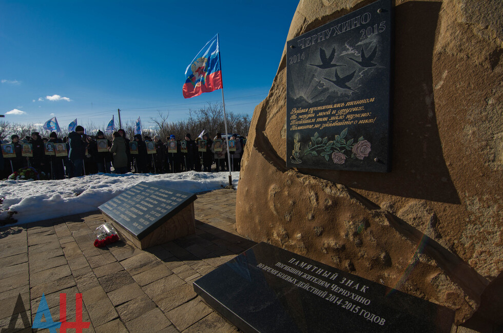The rally consisting of 300 people commemorated the memory of all the 34 residents of Chernukhino who were killed in 2014-2015. Children released white balloons in their honor. The minute of silence was observed, followed by laying flowers to a memorial to residents who were killed in the war.
