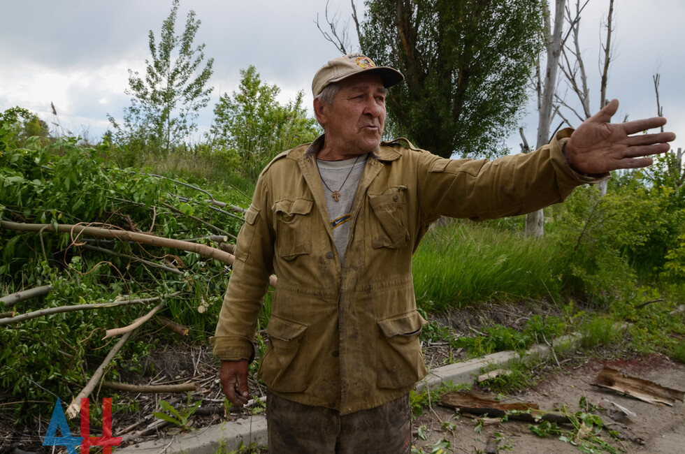 “I helped the wounded. I took boys to my home, how could I refuse. Bombs were dropped right on my vegetable patch. A tank gun round wrecked the roof of his house, and damaged walls and windows. In Stratonavtov Street, a house burnt down in 2014, and my dad’s house was smashed to pieces. I lost everything. The garage, my car and the pigeon house, the hencoops. Fourteen shells impacted at my place. I have no teeth because they were knocked out,” the local resident said.