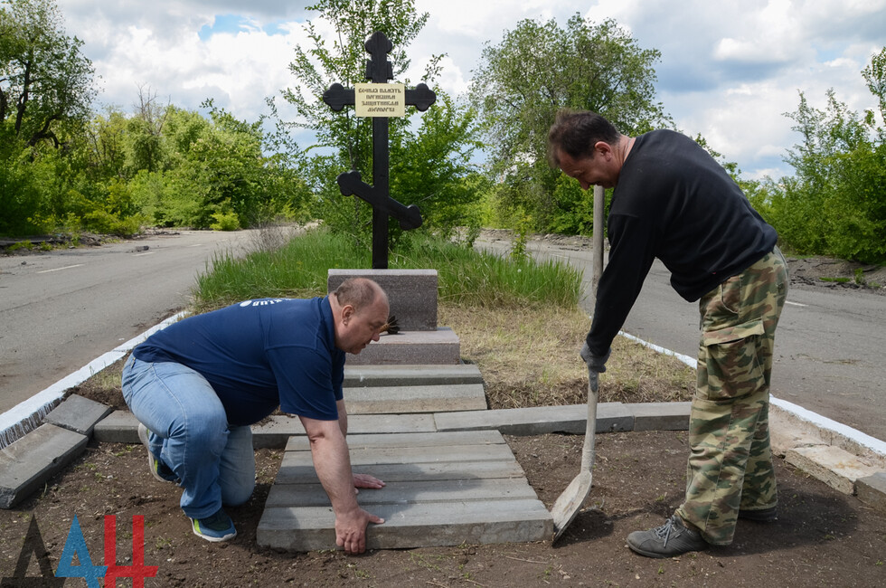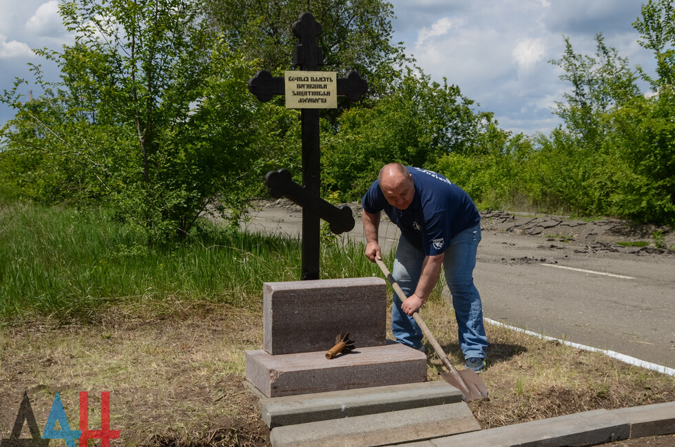 The cross was installed in March 2015. Beneath is a capsule containing the soil from the homeland of the fallen fighters, Donetsk residents and Russian volunteers. A memorial for the militiamen who sacrificed their lives in fighting for the city is in the plans.