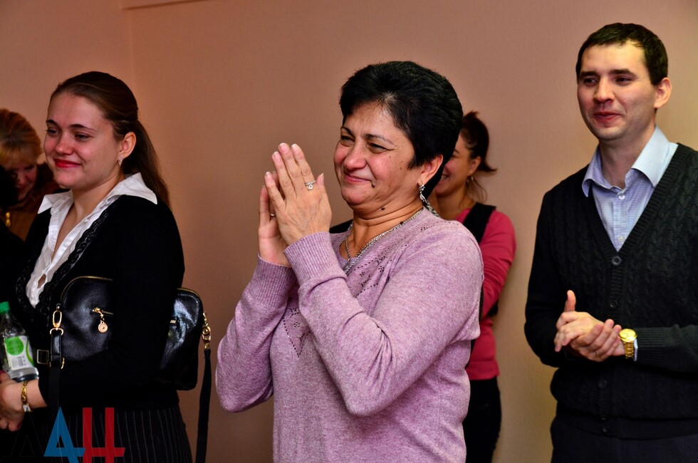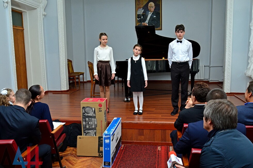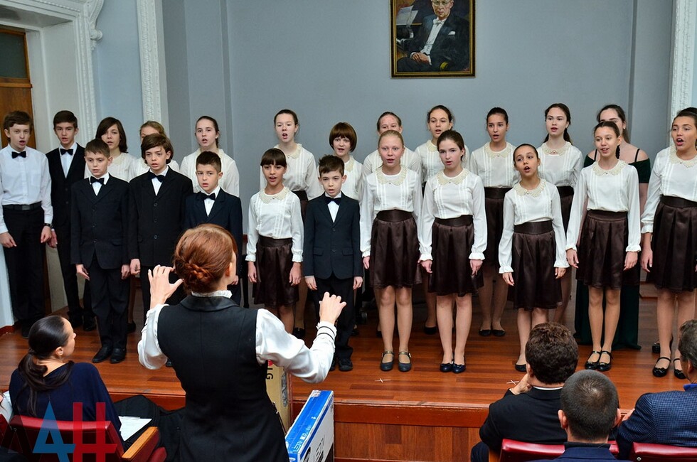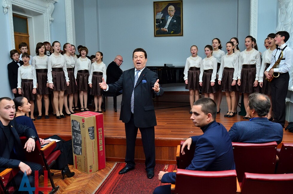 The school students met Kobzon in Donetsk State Music Academy and gave a concert, Russian singer performed some songs together with children's choir.