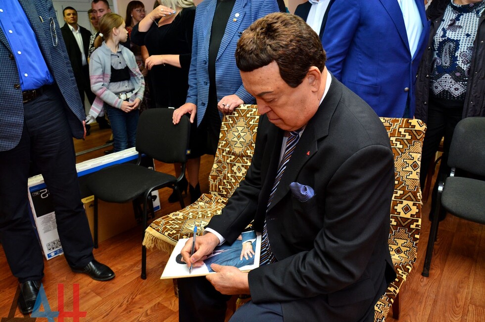 Donetsk, Oct 15 – DAN. Russian prominent singer Iosif Kobzon, People's Artist of the USSR and People's Artist of DPR, handed aid to Donetsk specialized boarding school for bright children and a kindergarten in Kievskiy district of the city that was hit by Ukrainian forces shelling.