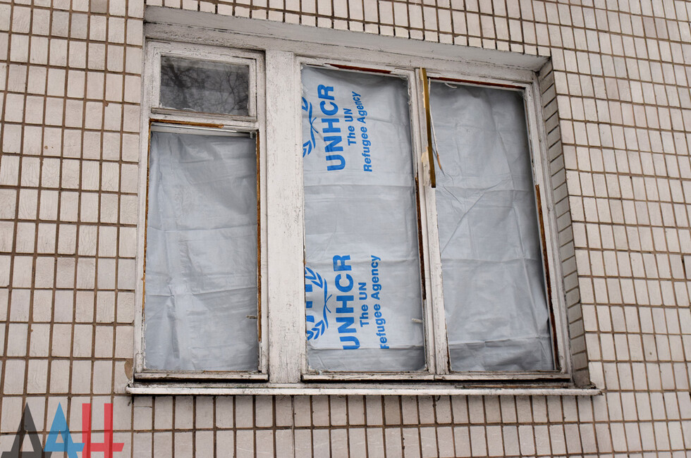 Donetsk, Feb 2 - DAN. The DPR Defence Ministry building came under fire on Thursday evening; the grenade launcher used in the attack was positioned near high-rise apartment houses in Chelyuskintsev Street in Donetsk’s Kievskiy District.The supporting structures of the two houses were slightly damaged; windows in nine apartments sustained damage as well.