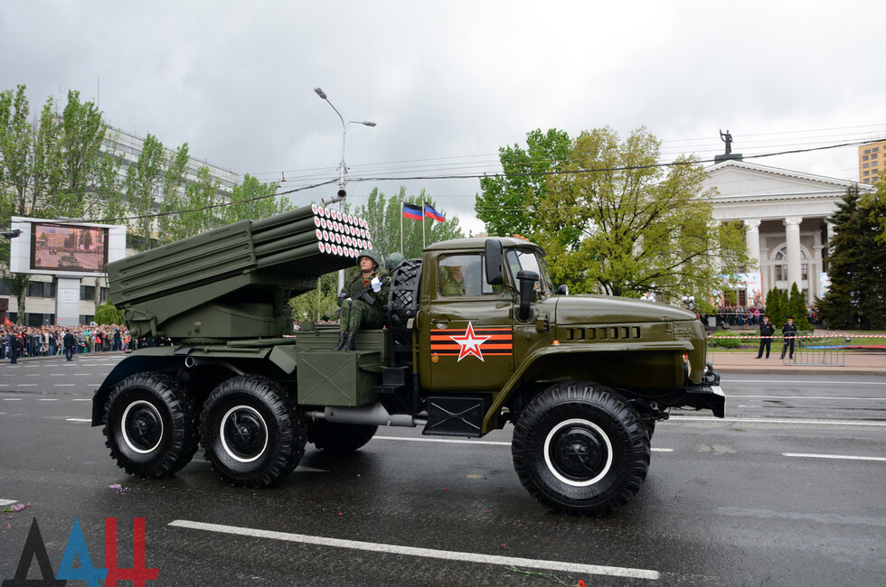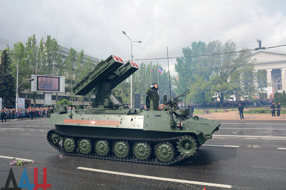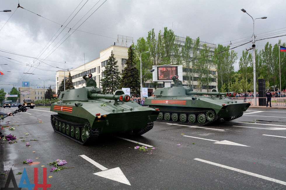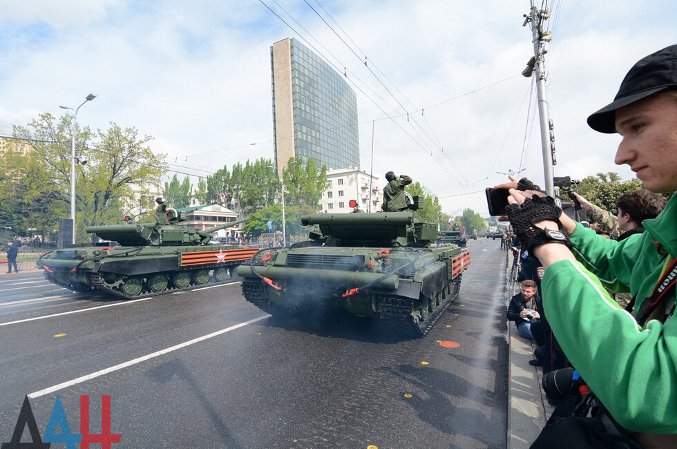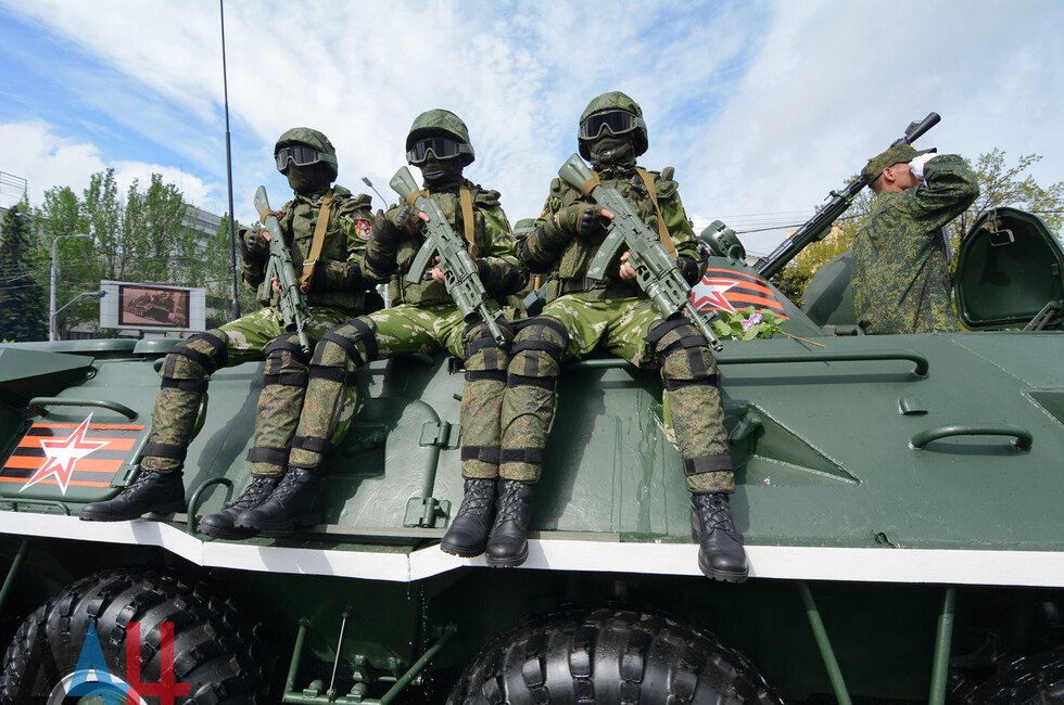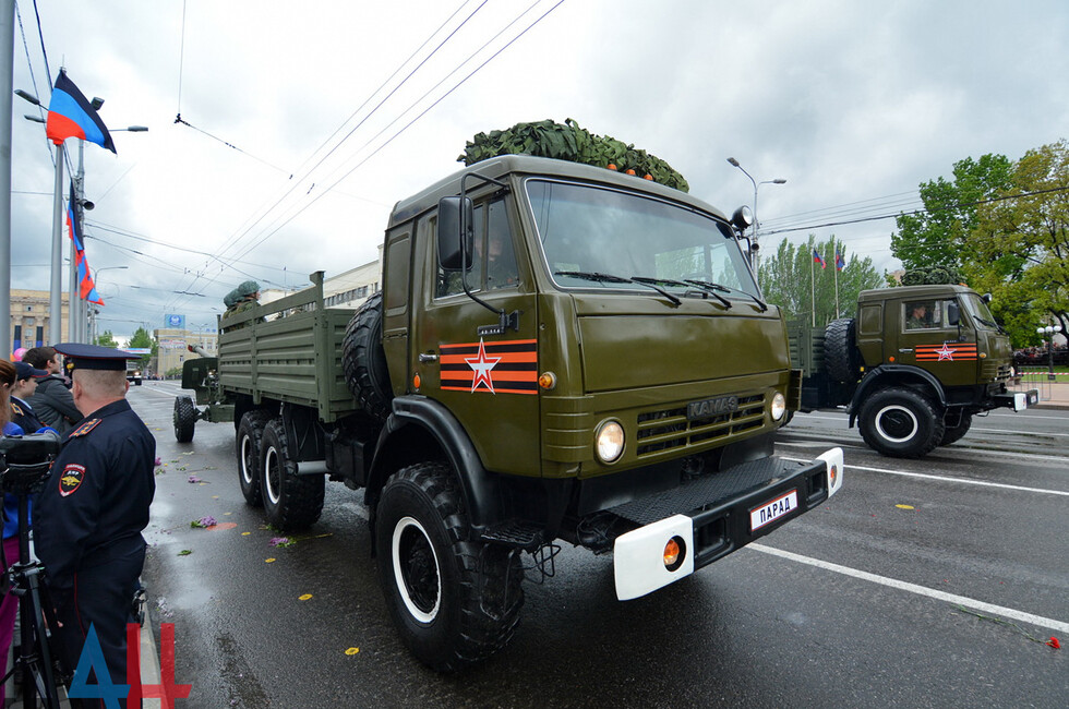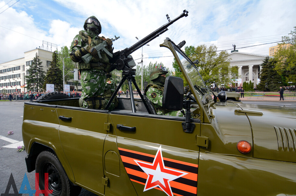 The modern military equipment shown at the parade included BTR-80 armoured personnel carriers of the Jaguar rapid response force which was once commanded by DPR hero Arsen Pavlov (call sign Motorola). Snipers on quad bikes, armed with DPR-designed Donchanka rifles, a DPR anti-sabotage unit, were in the rear of the column.