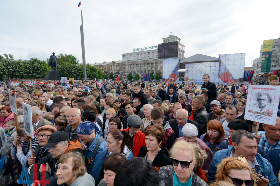 Dozens of thousands of DPR residents and guests from Kiev-controlled areas of Donbass gathered in central Donetsk. The Republic’s commander-in-chief, DPR Head Denis Pushilin, government officials, parliamentarians and cultural workers, scientists and public activists attended the event. They will join the Immortal Regiment march in honour of their relatives who died in the fight for freedom and peace.*jk