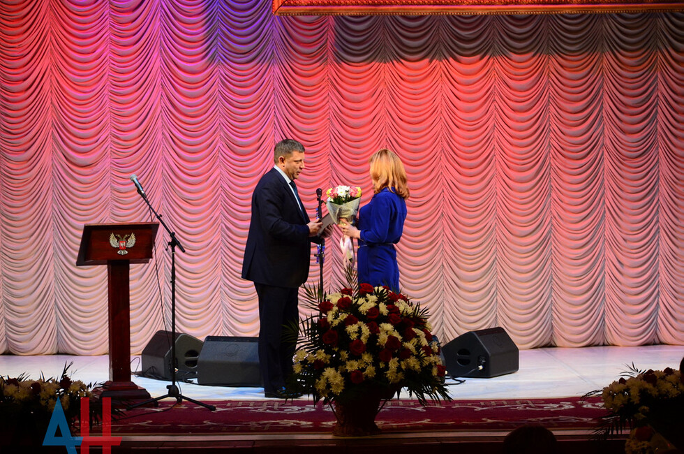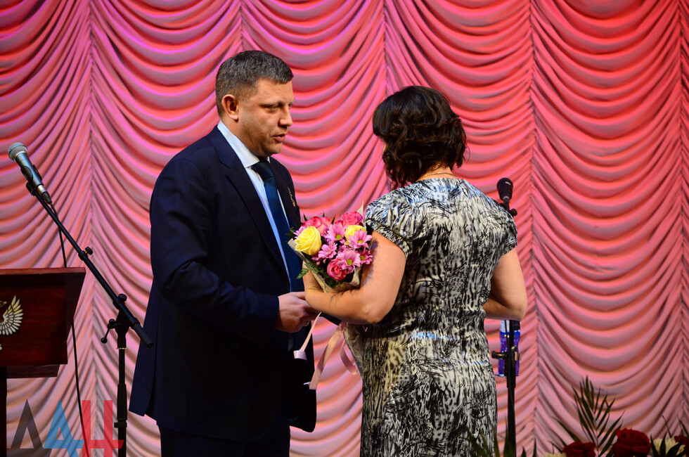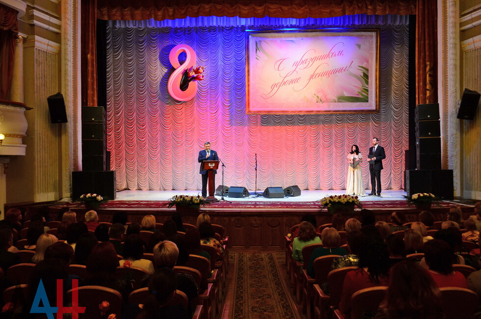 Donetsk, Mar 6 - DAN. Donetsk People’s Republic head Alexander Zakharchenko attended on Tuesday an award-giving ceremony for female employees of DPR ministries and departments in the runup to the celebrations marking International Women’s Day. The function took place at the Donetsk State Music and Drama Theatre.
