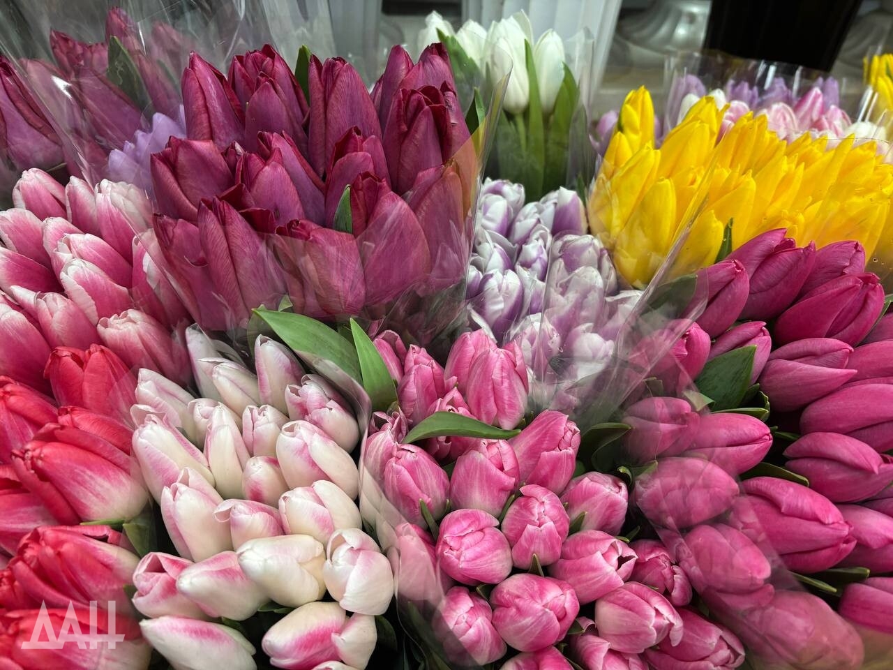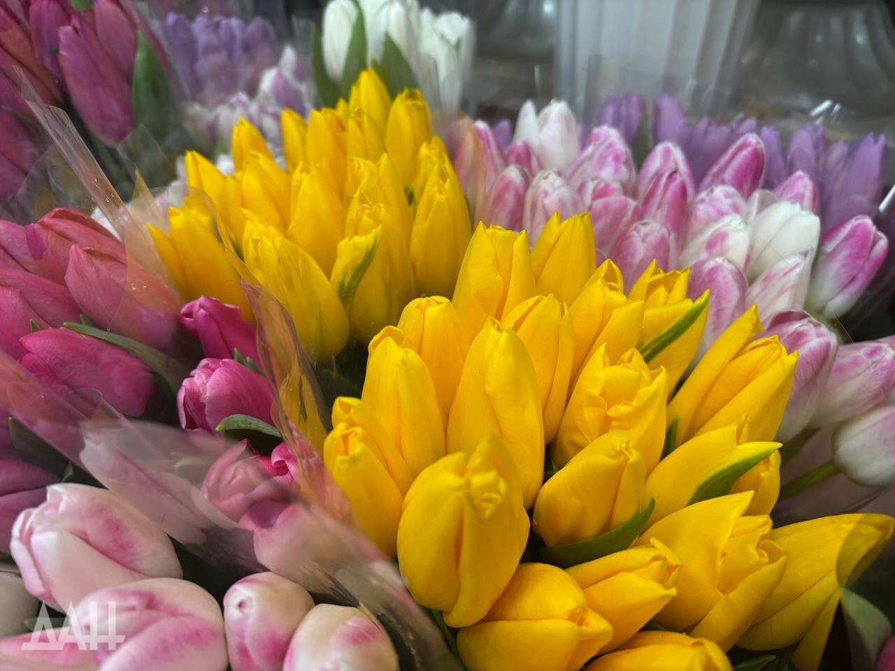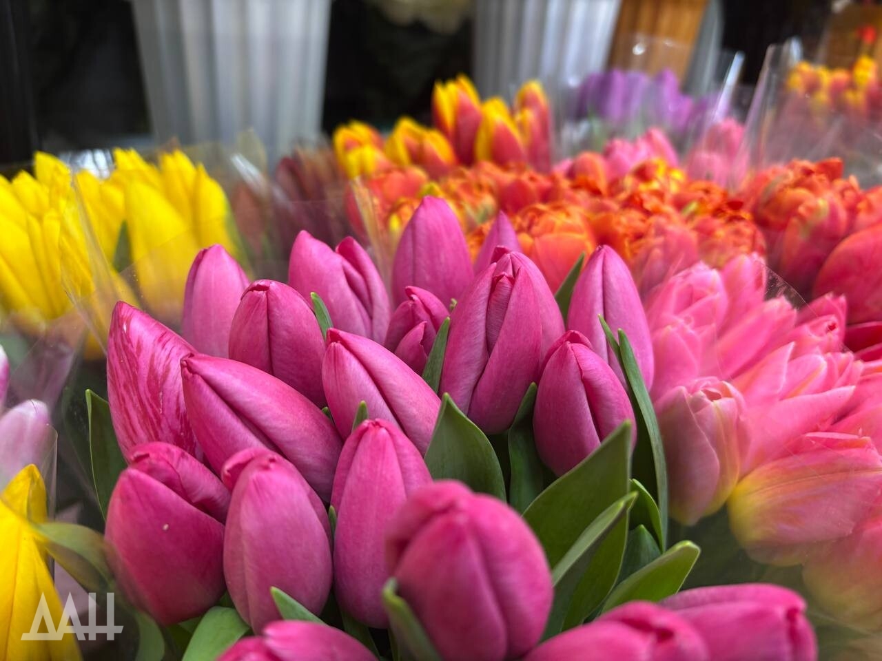 Заходишь в цветочный магазин — и глаза разбегаются: так хочется выбрать что-то покрасивее, получше. Продавцы едва успевают собирать букеты — поток покупателей не иссякает с самого утра. Прилавки ломятся от тюльпанов всех сортов и оттенков: от классических красных до нежных пионовидных и «попугайных» с резными лепестками. Нам, например, приглянулись тюльпаны с лепестками лимонного цвета, а не привычными желтыми.