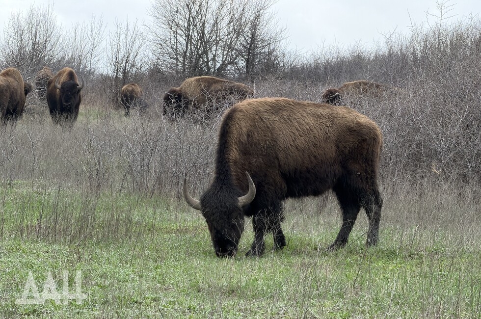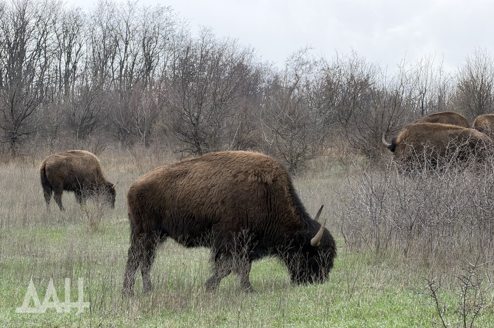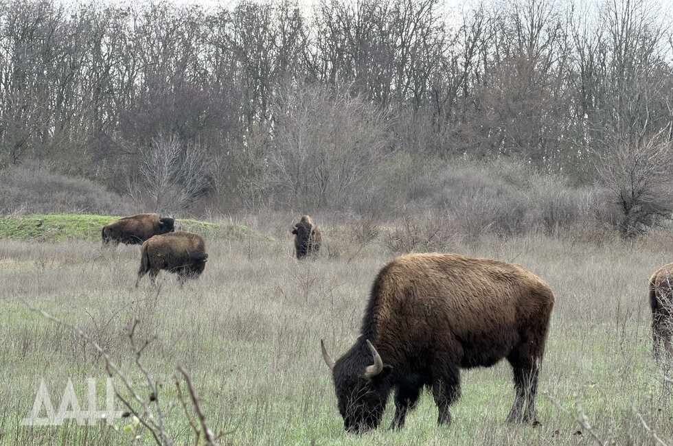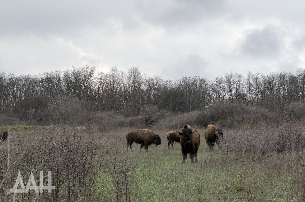 «В районе Саур-Могилы, это как раз стык Шахтерского и Амвросиевского районов ДНР, сейчас находятся порядка 15 бизонов. Как мы понимаем, у них сейчас вольный выгул, то есть они могут ходить, куда захотят. Но на самом деле они придерживаются того места, где они в принципе привыкли, где они постоянно жили, где их постоянно кормили, но, к сожалению, боевые действия на территории республики с 2014 года дали свои результаты, и те хозяева, которые полноценно еще до боевых действий еще поддерживали, у них пропала возможность поддерживать данных бизонов», — сказал Шебалков.