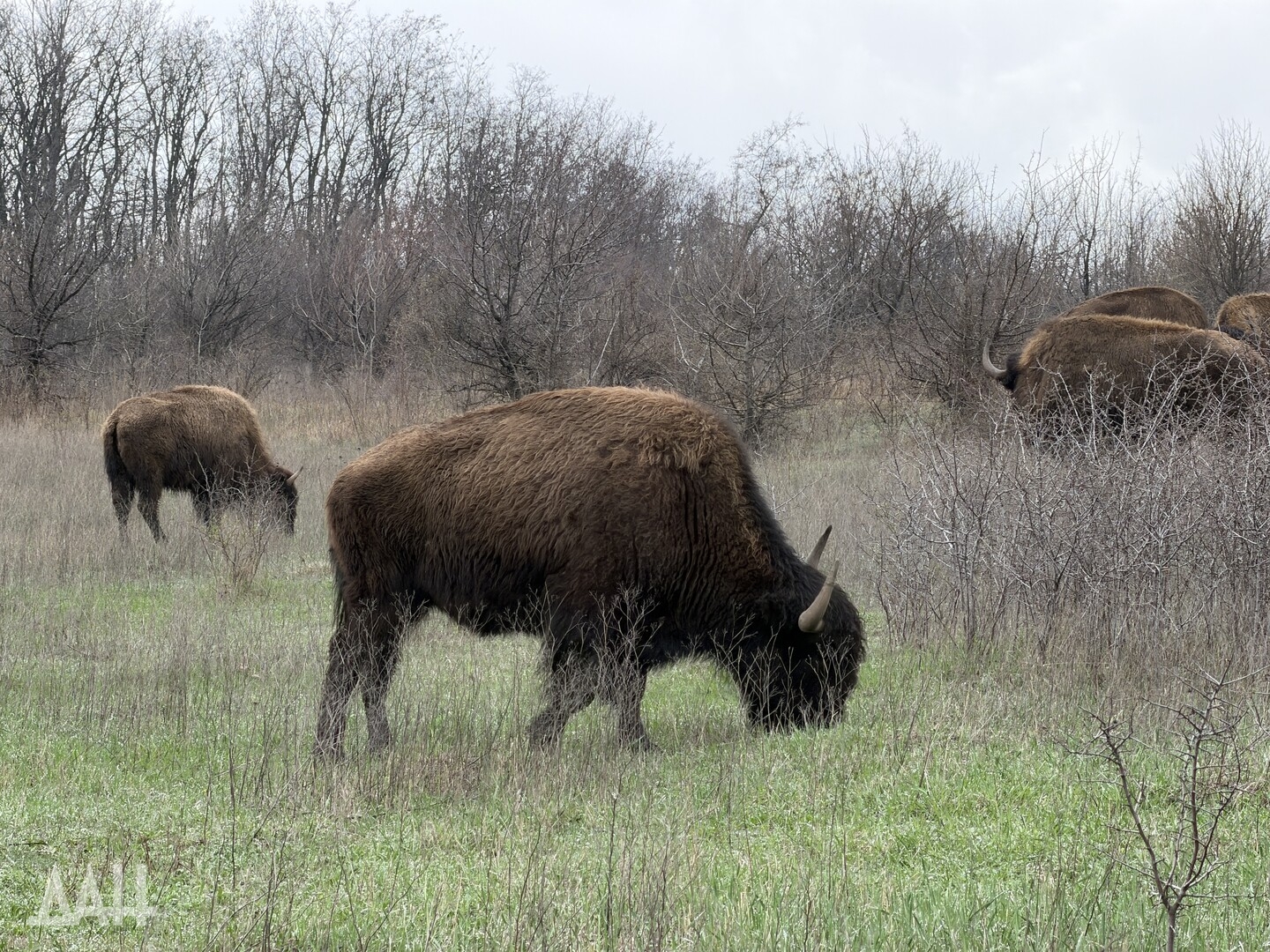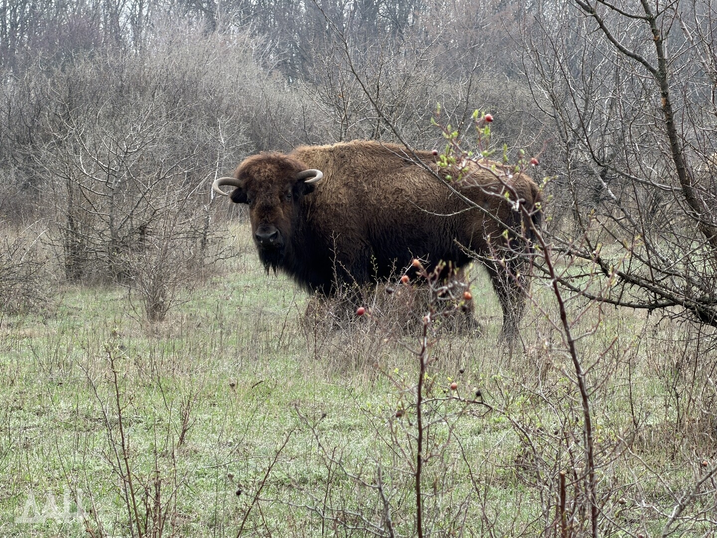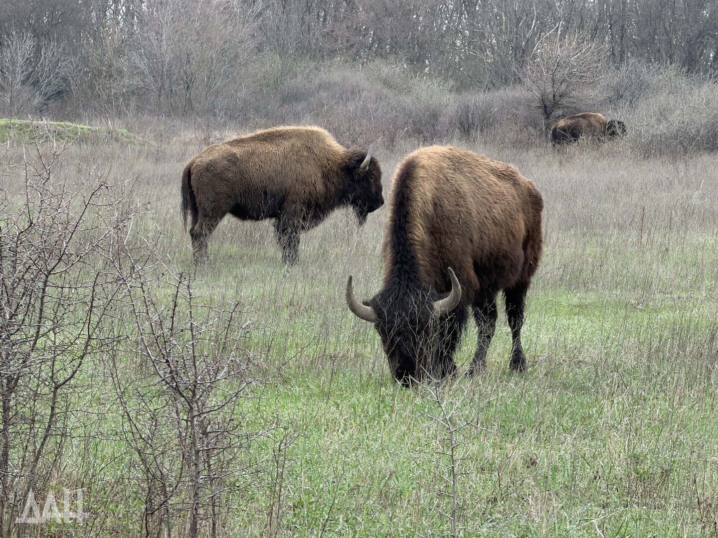Он добавил, что бизонов привезли в ландшафтно-рекреационный парк «Донецкий кряж» в конце 2000-х по инициативе сельхозпредприятия, расположенного в селе Тараны. Предприятие было основано в 2007 году, занималось разведением КРС и сельхозкультурами, а также «осуществлением охотничьей деятельности, включающей адаптацию редких видов животных к климатическим условиям степного Донбасса». Животных привезли из заповедника «Аскания-Нова», специалисты которого помогали в адаптации степных гигантов. За два года в донецком крае поселились семь особей. Раз в полгода к ним приезжали ученые из заповедника, чтобы проведать подопечных и составить заключение, насколько успешно они прижились. Конфликт 2014 года разделил два региона, и сотрудничество прекратилось.