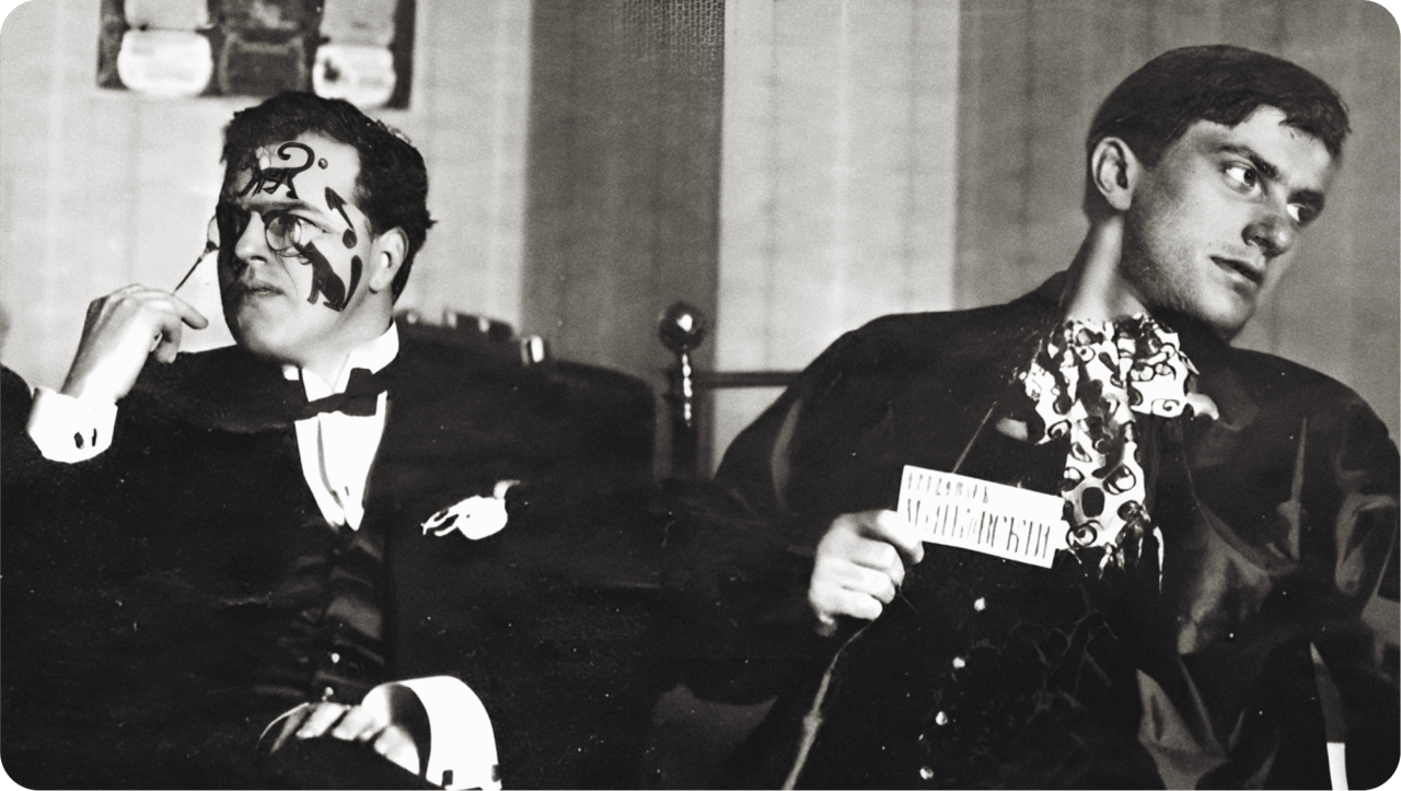Но главной книгой будетлян тех лет стал манифест «Пощечина общественному вкусу». В нем авторы отрицали прежние эстетические ценности и заявляли о разрыве с существующей литературной традицией. «Бросить Пушкина, Достоевского, Толстого и проч. и проч. с Парохода Современности», — писали они. Во время работы над манифестом Маяковский познакомился с уроженцем Херсона, поэтом Алексеем Кручёных — пожалуй, самым радикальным новатором в их компании. Позже Владимир Владимирович назовет его «футуристическим иезуитом слова», подразумевая способность Кручёных раскладывать язык на невообразимые «заумные» части.