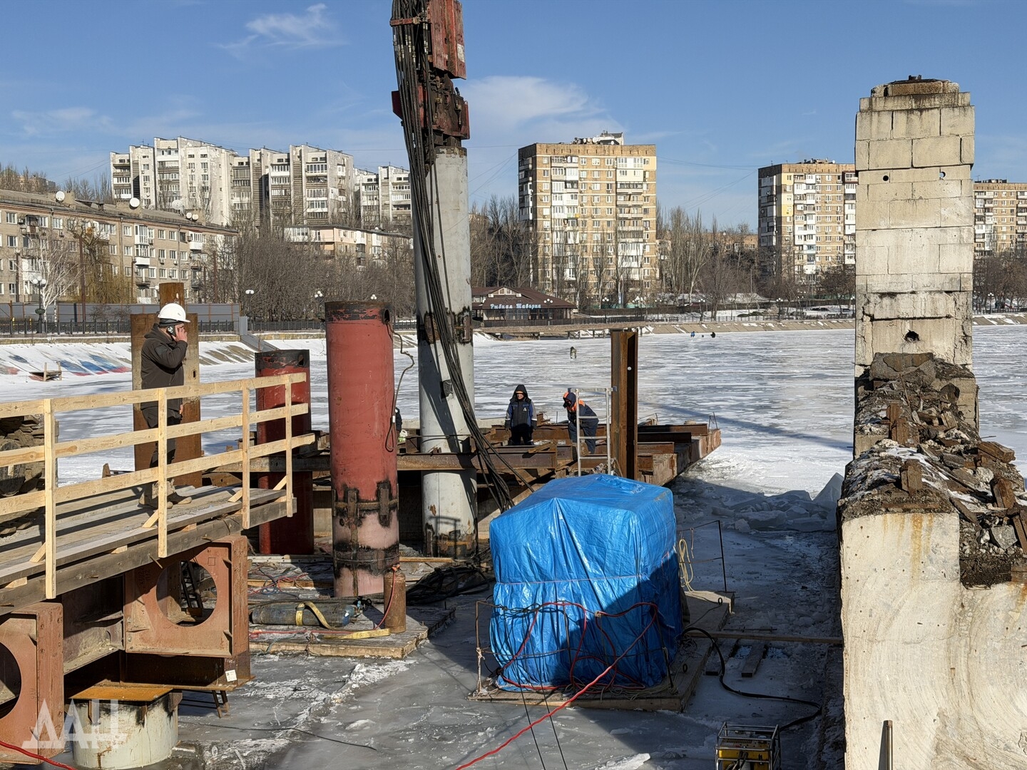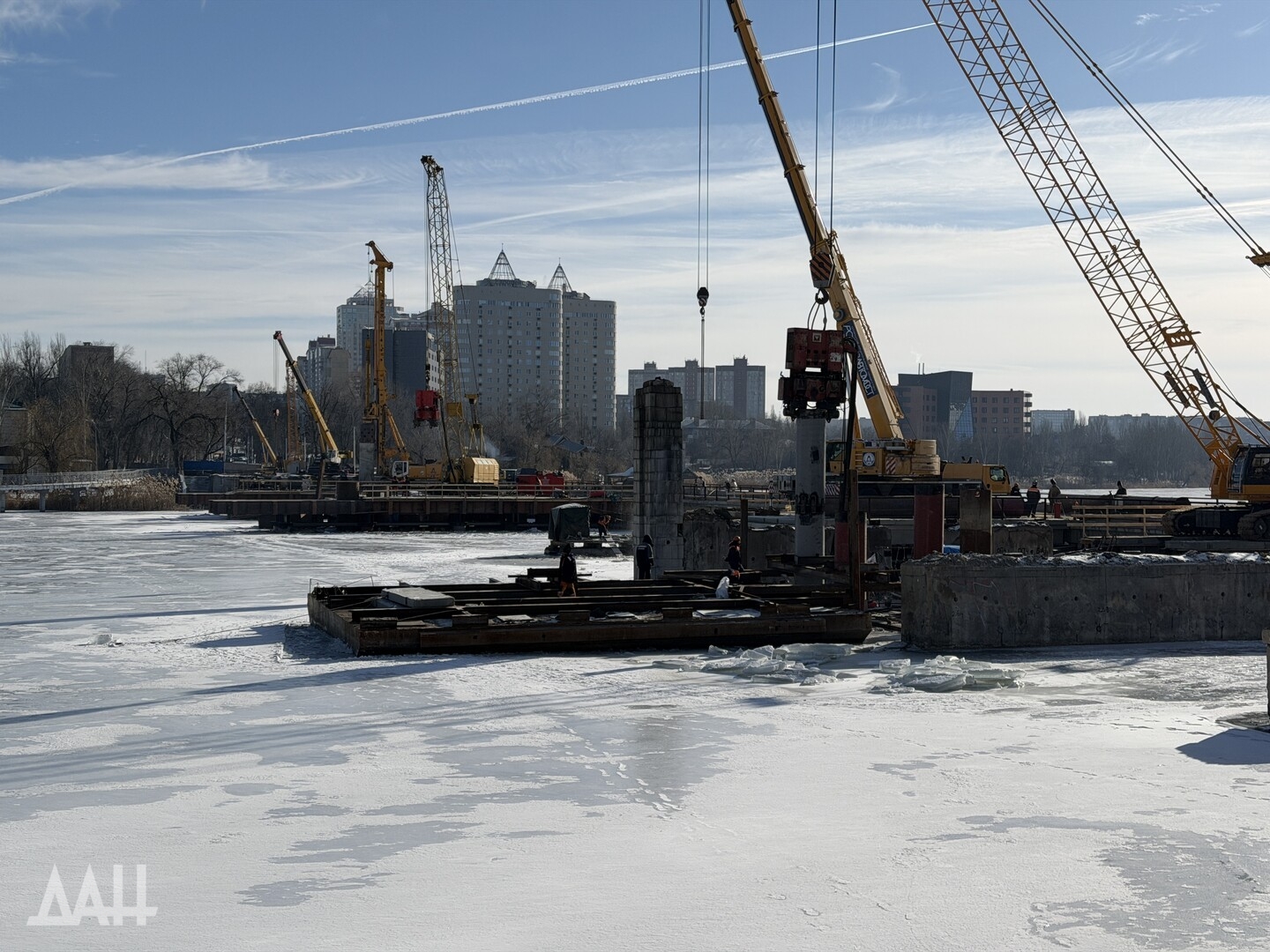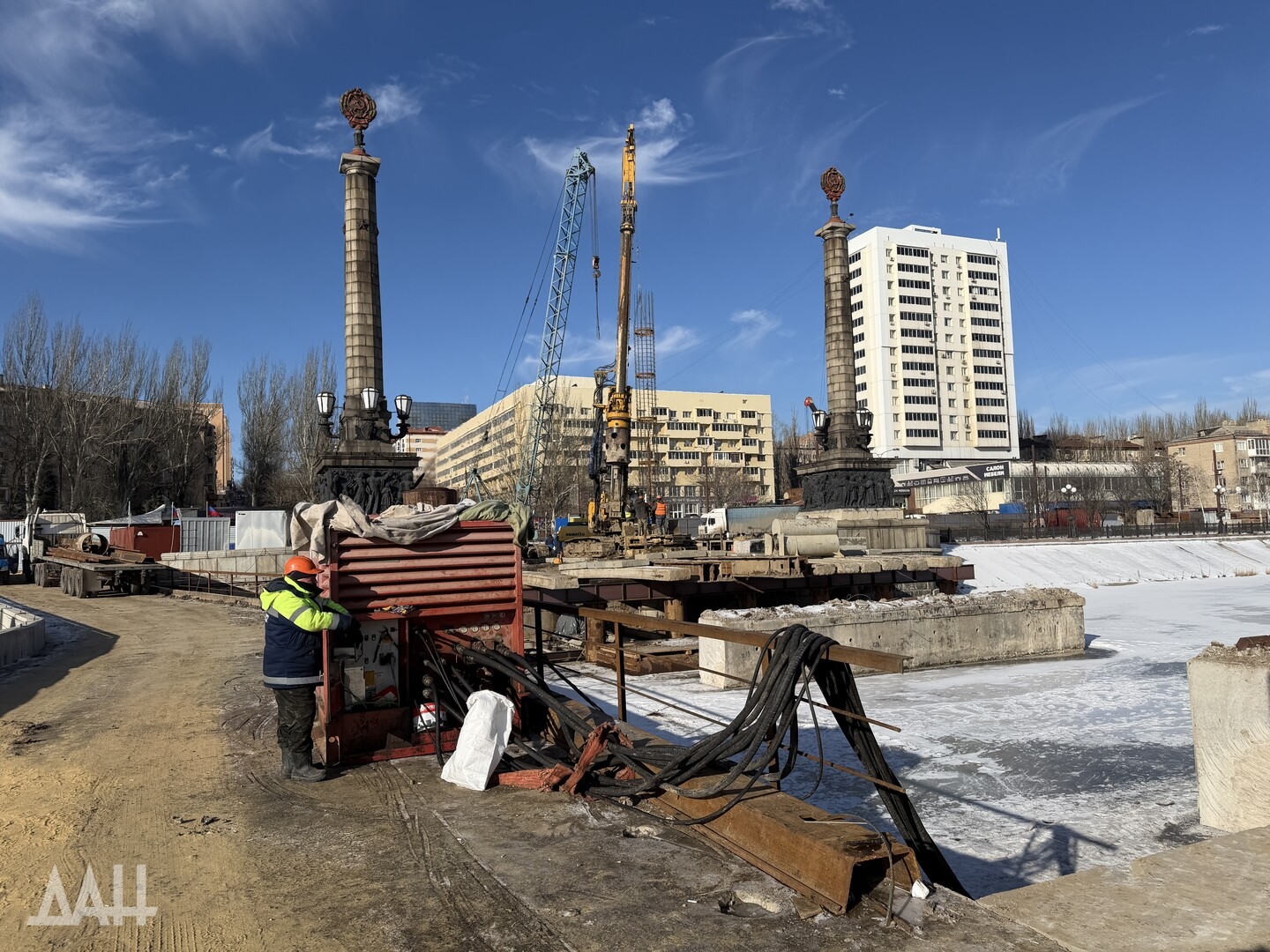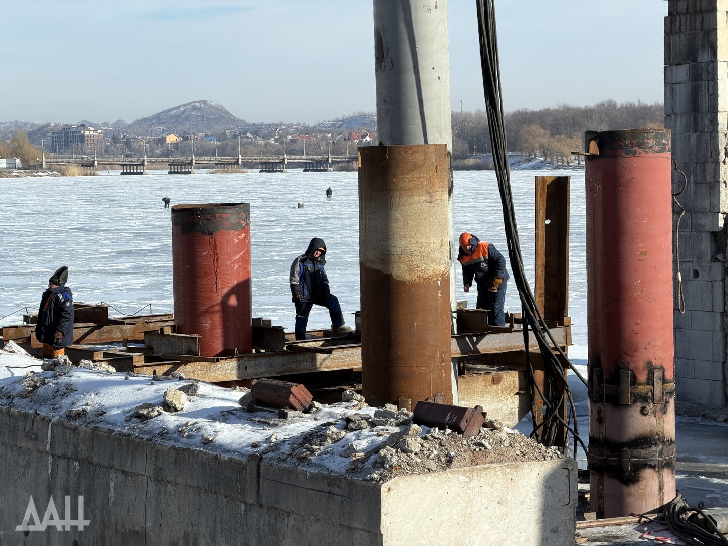 Донецк, 11 фев — ДАН. Специалисты продолжают работы по капитальному ремонту моста через реку Кальмиус в Донецке. На месте побывал корреспондент Донецкого агентства новостей, чтобы узнать детали о текущем этапе реконструкции, сроках сдачи и о том, как будет выглядеть обновленный мост.