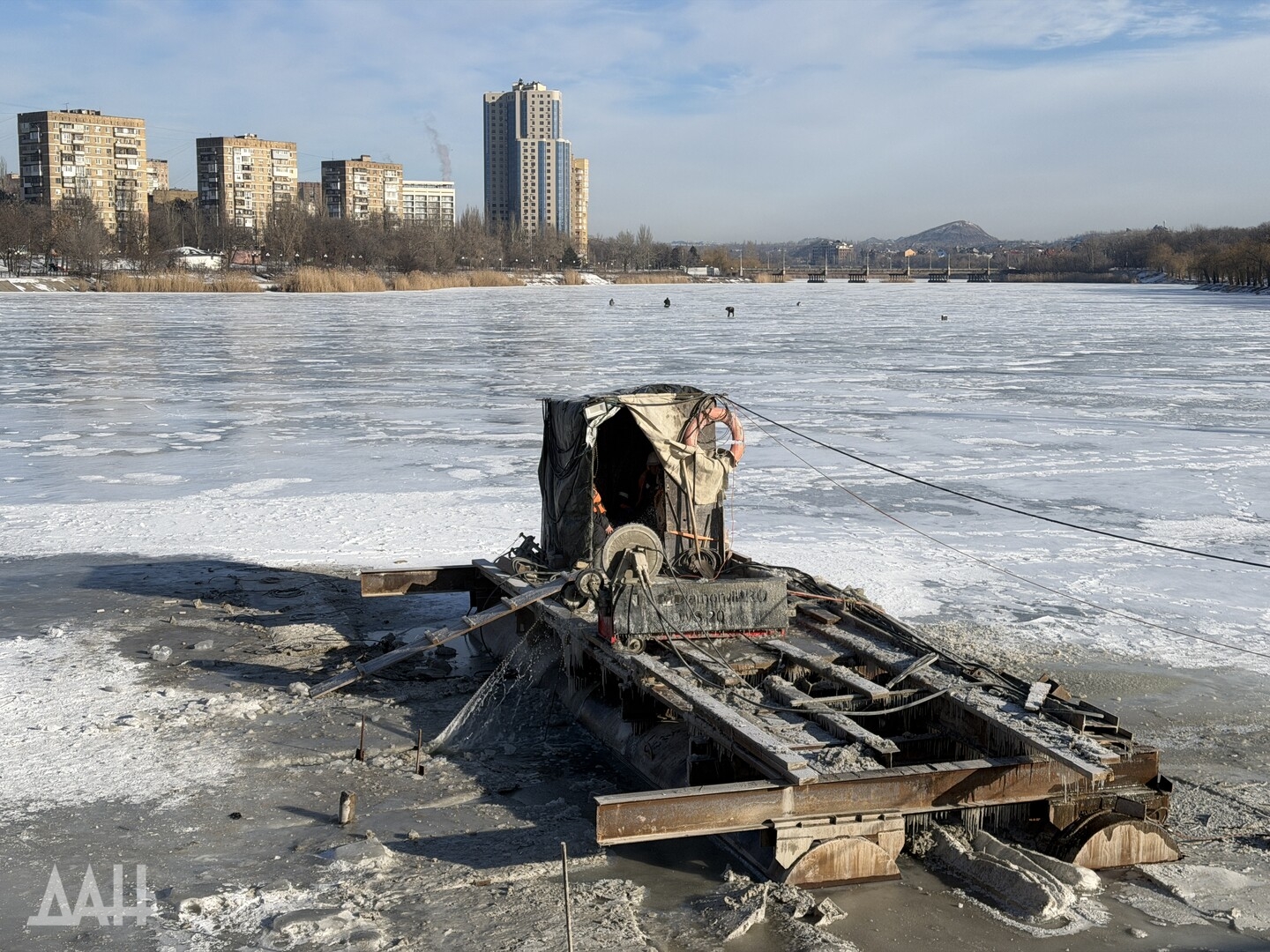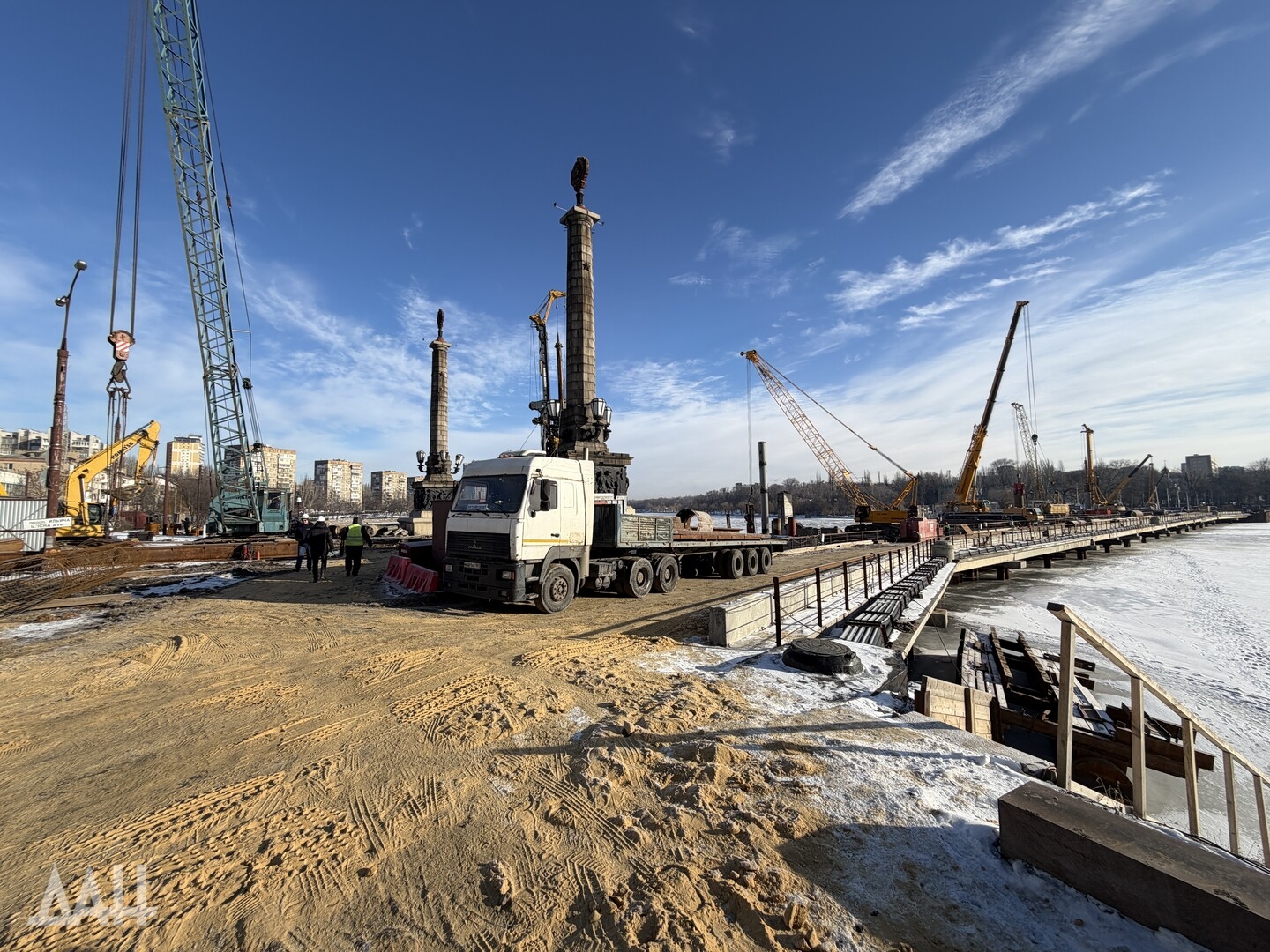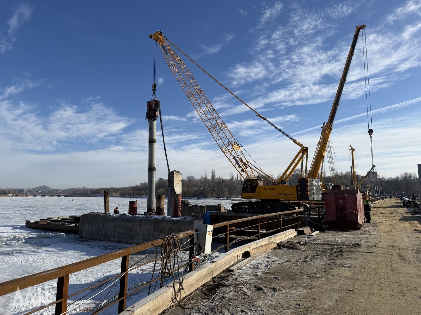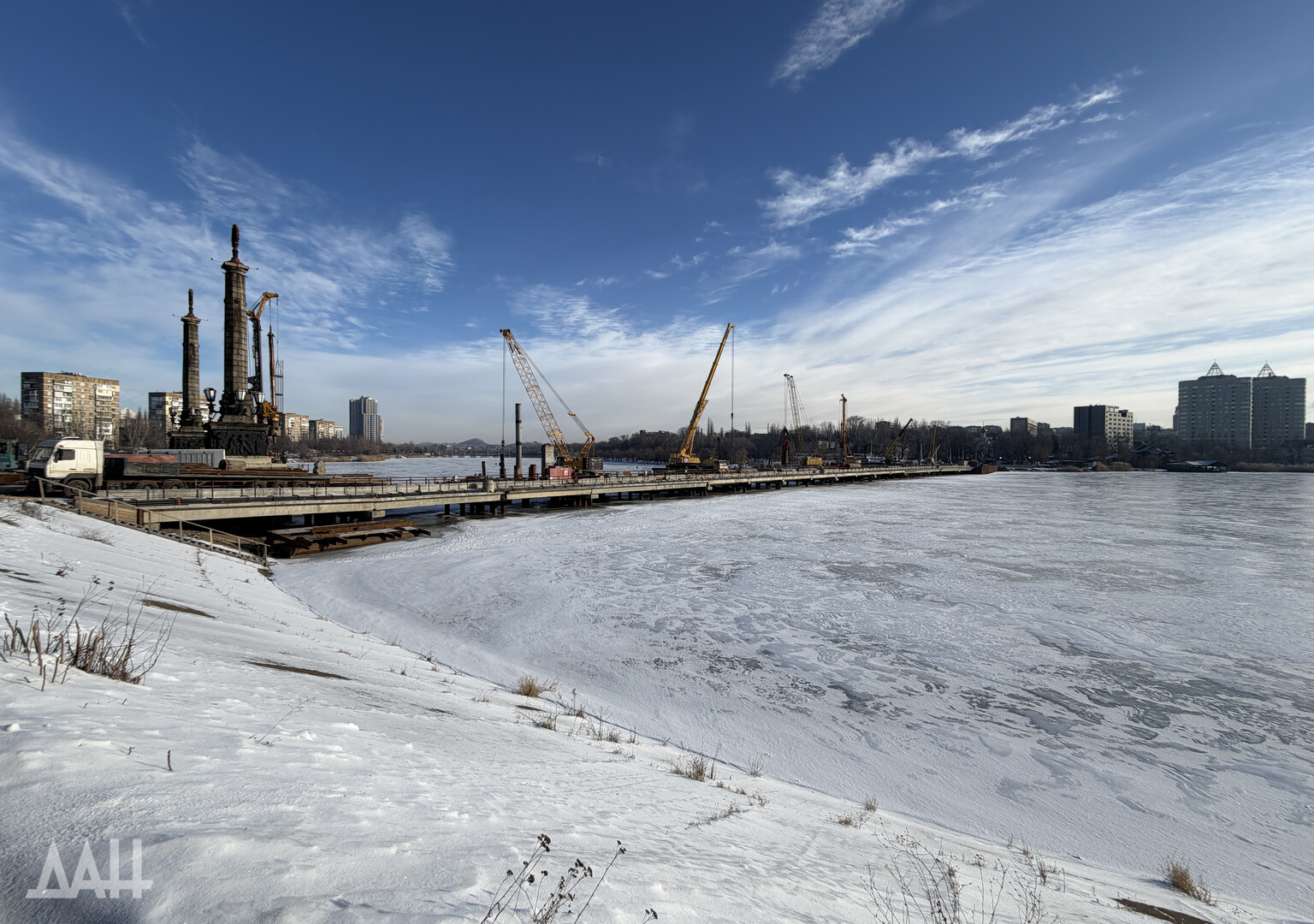 Донецк, 11 фев — ДАН. Специалисты продолжают работы по капитальному ремонту моста через реку Кальмиус в Донецке. На месте побывал корреспондент Донецкого агентства новостей, чтобы узнать детали о текущем этапе реконструкции, сроках сдачи и о том, как будет выглядеть обновленный мост.