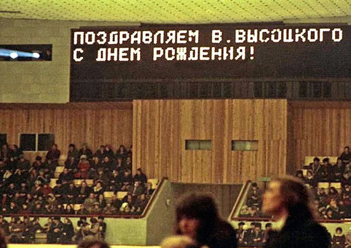 «Сорокалетие Высоцкого — этот день я хорошо помню, — писал он. — Мы работали во Дворце спорта в Северодонецке. А 25 января обком партии попросил сделать выступление в Ворошиловграде, в Доме культуры Чкалова… В ДК Чкалова Володе подарили громадный шоколадный торт — килограммов на восемнадцать! — и потрясающие гвоздики! А перед этим, в Северодонецке, во Дворце спорта на табло загорелась надпись: „Поздравляем любимого Володю с днем рождения!“. Володю это тронуло просто до слез».
