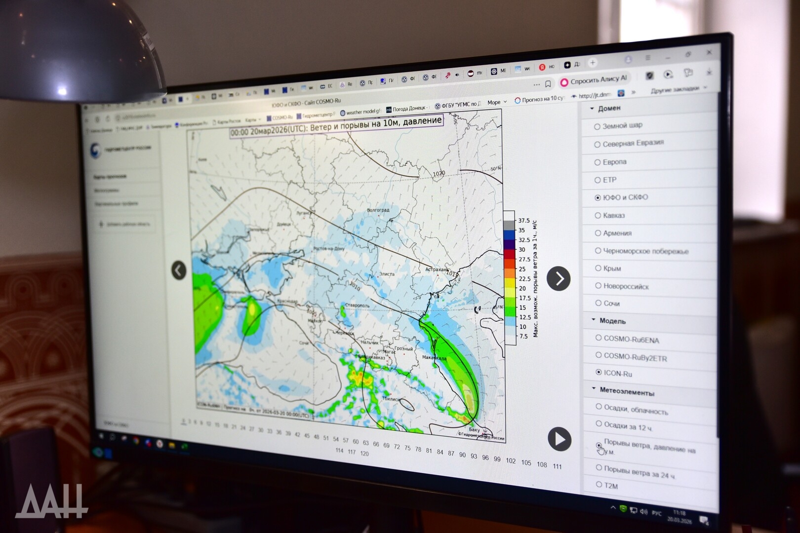 Донецк, 23 марта — ДАН. Наблюдения за комплексом метеорологических параметров в ДНР происходят каждые три часа, в единые синхронные сроки, а полученные данные наблюдений поступают в метеорологический банк погоды. Об этом Донецкому агентству новостей сообщила начальник отдела гидрометеорологического обеспечения Донецкого гидрометцентра ФГБУ «Управление по гидрометеорологии и мониторингу окружающей среды по ДНР» Любовь Бойко.