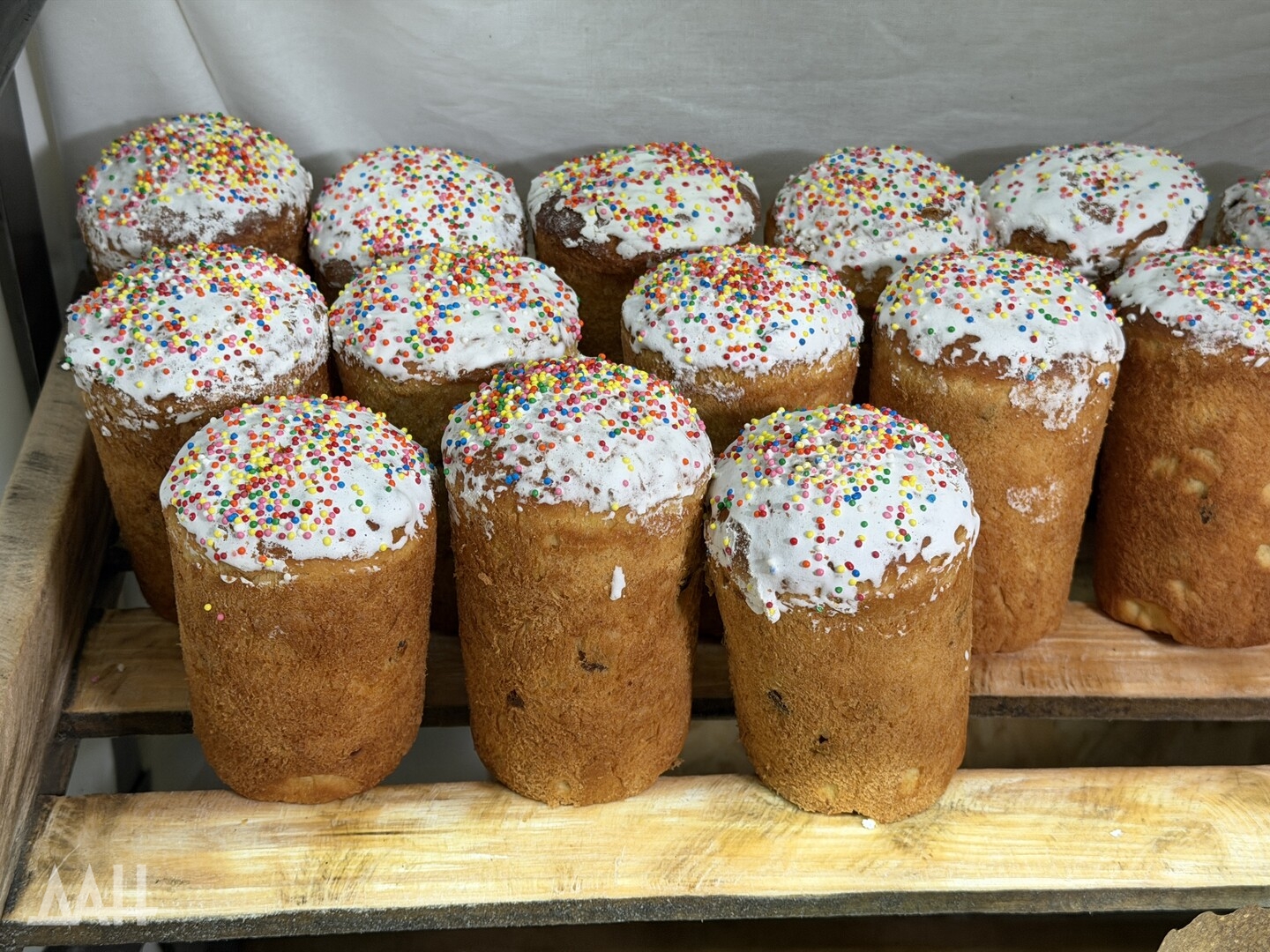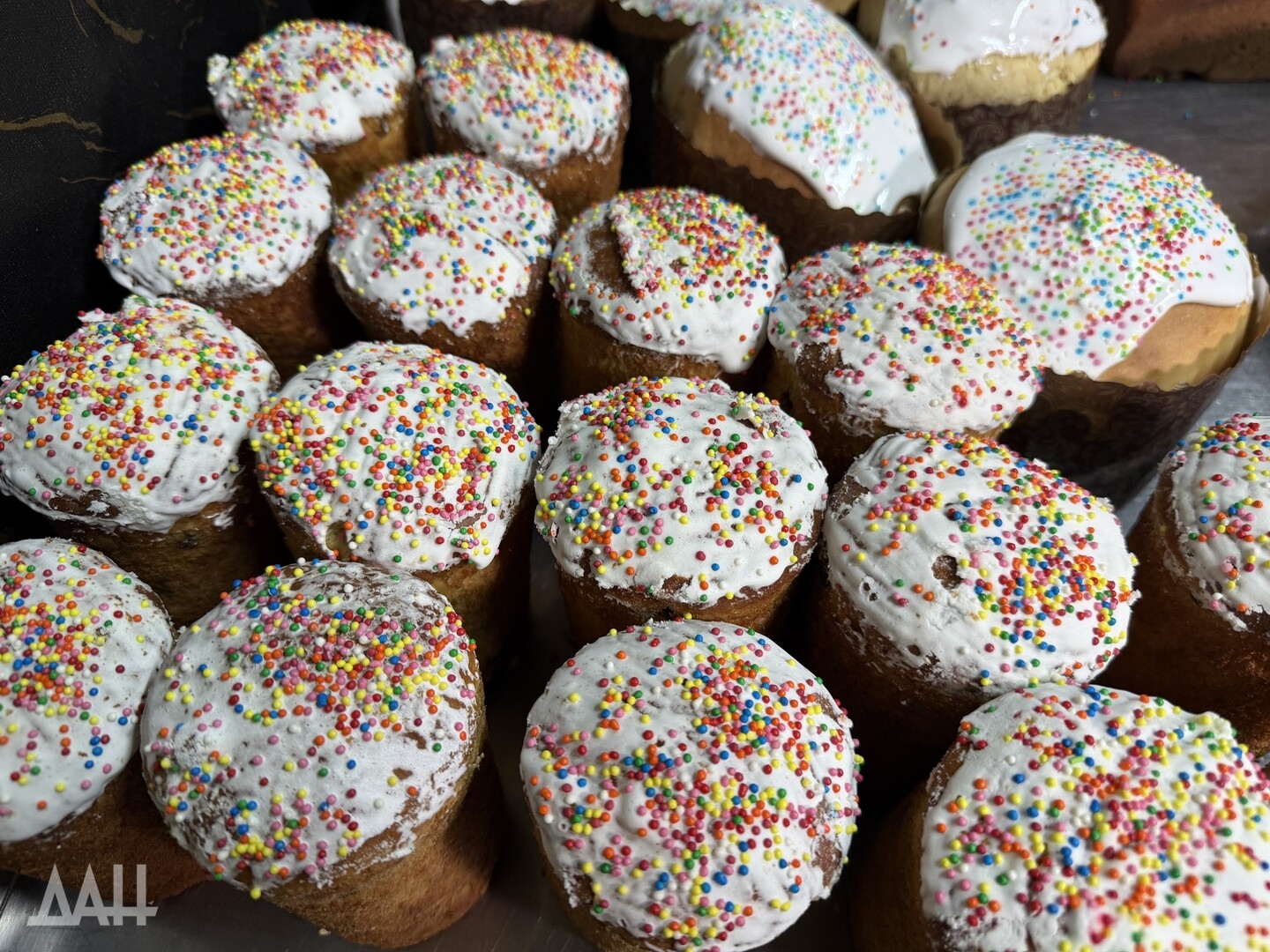Обычно здесь ежесуточно производят 260–300 килограммов хлеба, но в преддверии Пасхи поставлена особая задача — испечь тысячу куличей. Пасхальные атрибуты отправятся к артиллеристам на Константиновском направлении, на командные пункты и во все подразделения бригады.