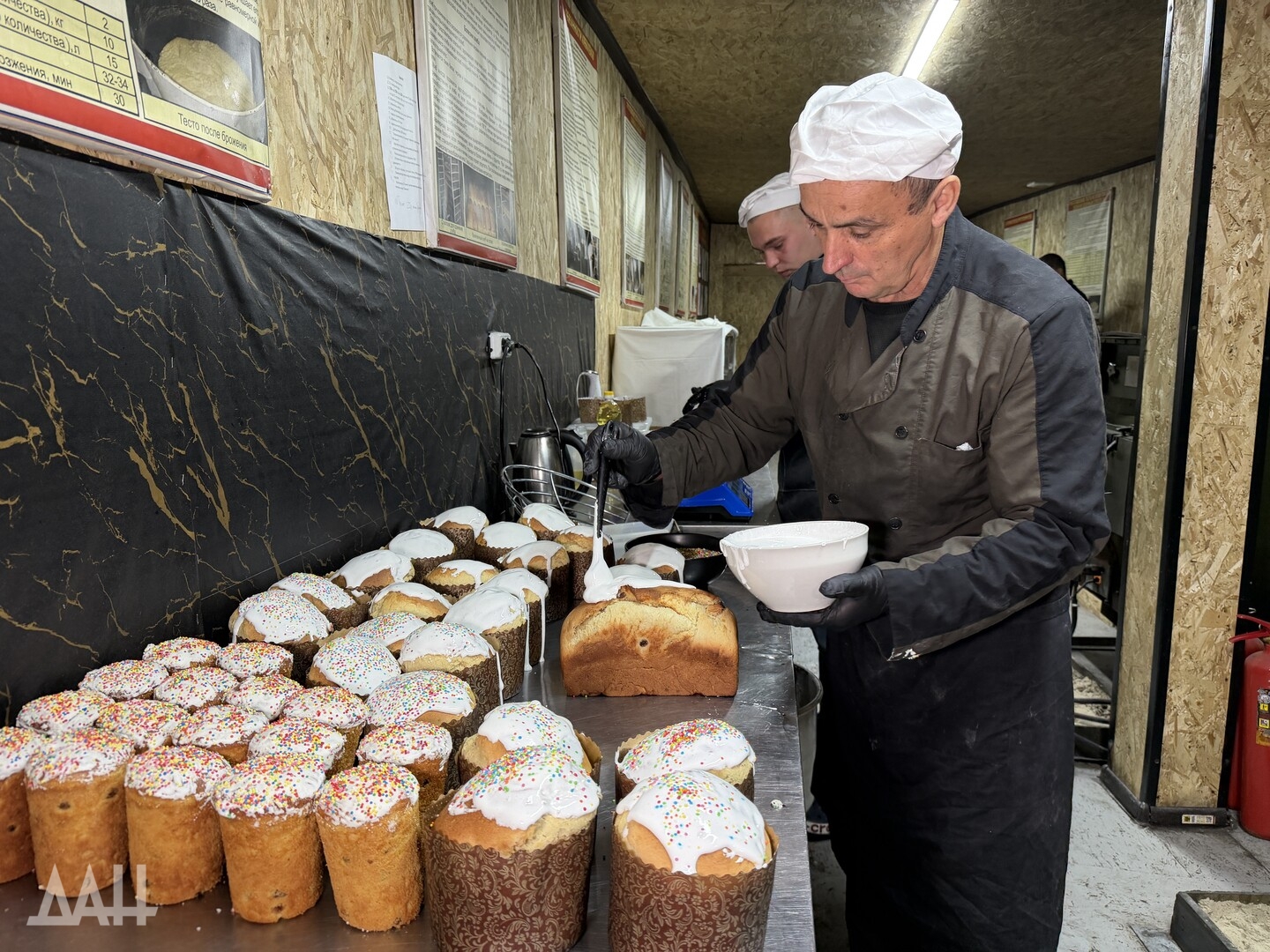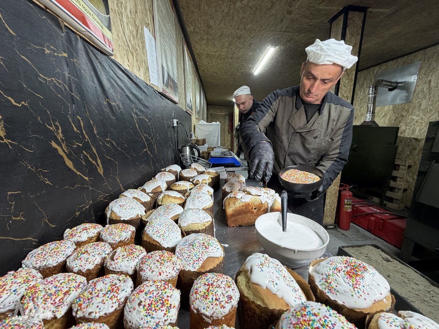 «В преддверии Светлой Пасхи сегодня перед нашим подразделением стоит задача выпечь до 1000 штук. Пасхальных куличей. Процесс идёт уже сейчас сутки, чтобы все успеть вовремя, чтобы мы все выдали нашим боевым подразделениям, нашим артиллеристам, которые несут службу на передовой. Чтобы у них поднялся боевой дух, так сказать, чувствовался православный праздник, что у них есть и что за них заботятся в тылу, чтобы они знали все», — рассказал командир роты «Беркут».