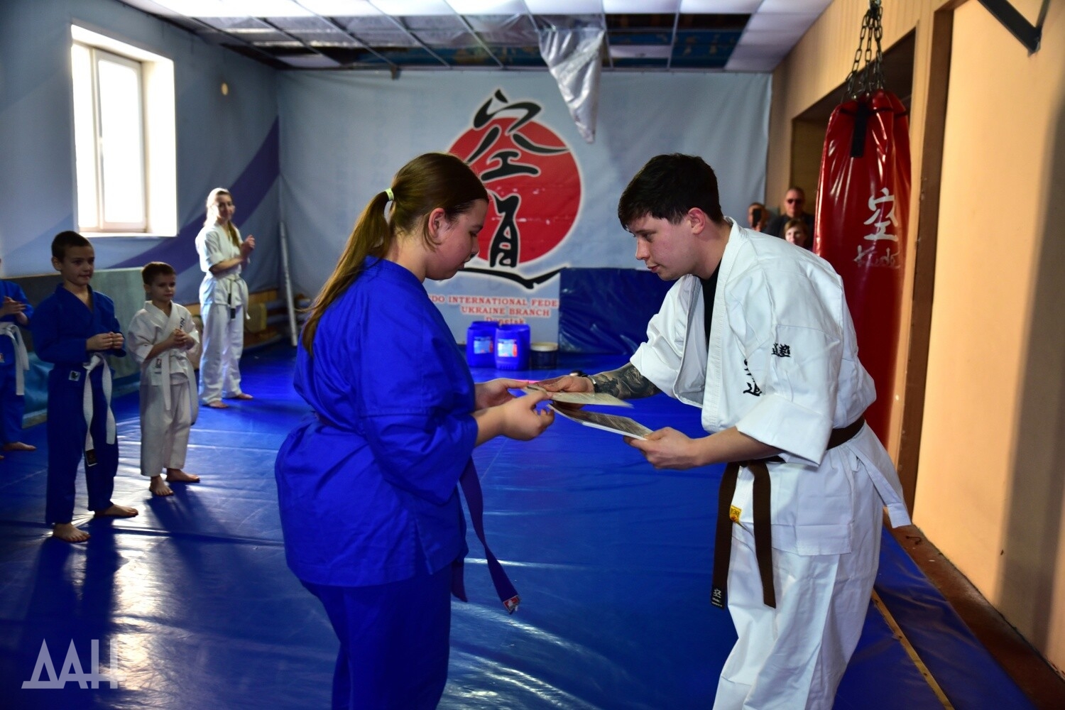 «Сегодня была открытая тренировка с приглашенными участниками. Важна она была тем, что мы получили и вручили первые сертификаты Российской Федерации о прохождении аттестации на ученическую степень (кю). В зависимости от кю меняется цвет пояса. Юные спортсмены, которые в декабре прошли успешно аттестацию, получили сертификаты. Также при поддержке Московского регионального отделения, которое нам помогает во всем, детям были переданы сладкие подарки», — рассказал собеседник ДАН.