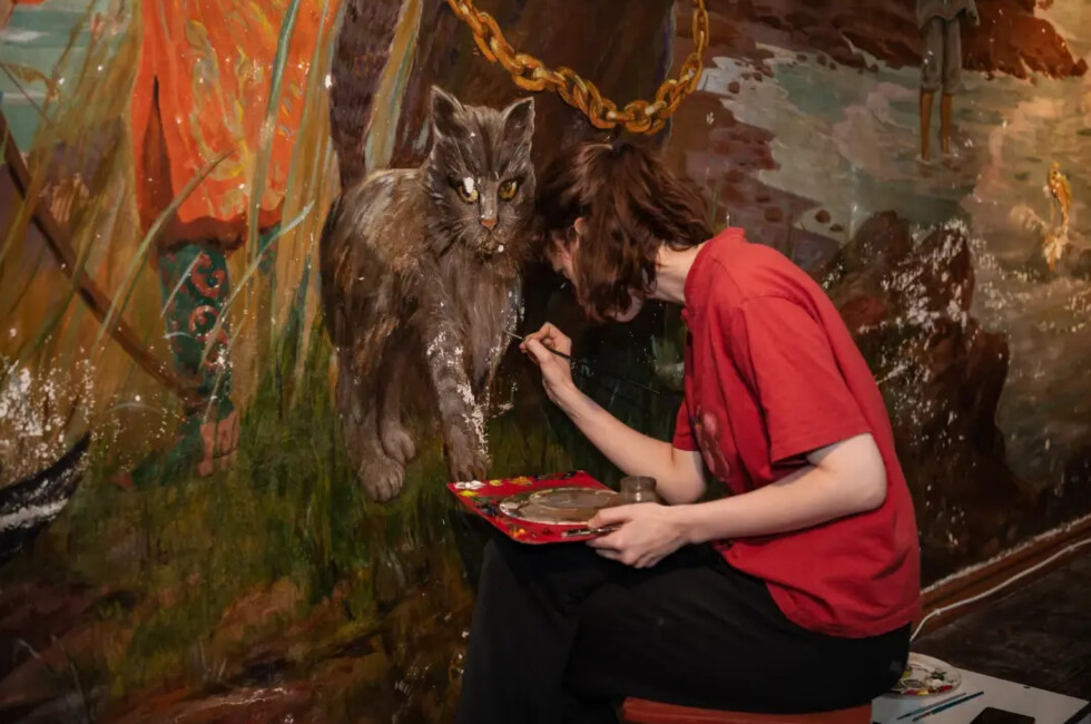 «Для реставраторов это, наверное, первый объект в Донецке, на Донбассе, где действительно требуется реставрация именно внутренних интерьеров, монументальной живописи. Комната расписана по мотивам сказок Александра Сергеевича Пушкина», — подчеркнула руководитель проекта.