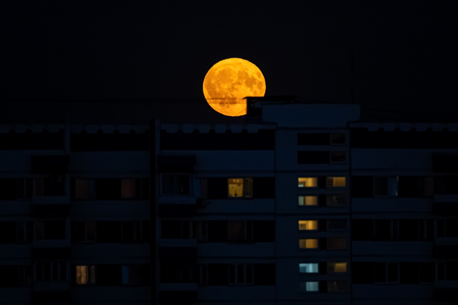 Луна восходит на востоке практически сразу после захода Солнца. В разных муниципальных округах ДНР она будет выглядеть слегка приплюснутой из-из оптической иллюзии намного большего размера, чем в зените. Лучи света проходят в атмосфере Земли больший путь, и из-за поглощения коротковолновой части спектра Луна приобретает слегка оранжевый или золотистый оттенок.