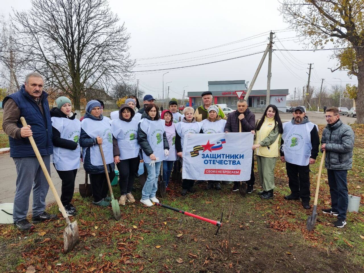 Донецк, 5 ноя — ДАН. Ветераны и члены семей погибших военнослужащих, состоящие на сопровождении в филиале «Защитники Отечества» в ДНР, высадили в донецком селе Бирюки живой памятник мужеству и самоотверженности защитникам. Об этом Донецкому агентству новостей в пресс-службе филиала госфонда.