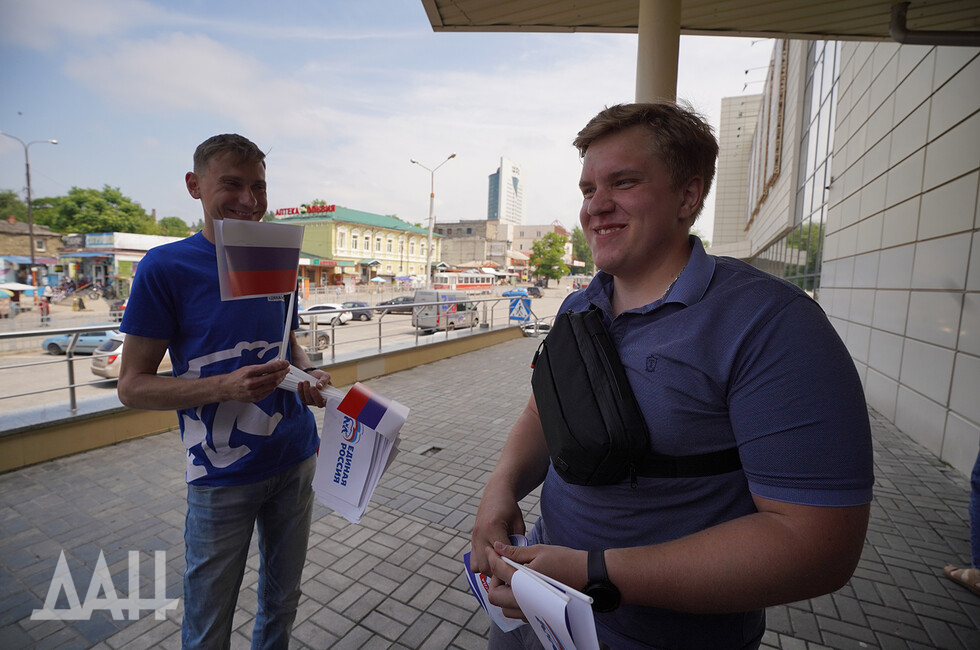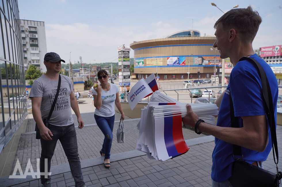 В акции помимо активистов ОД «ДР» приняли участие представители Донецкого регионального отделения партии «Единая Россия». Праздничную атрибутику они раздавали в самых людных местах столицы Республики.