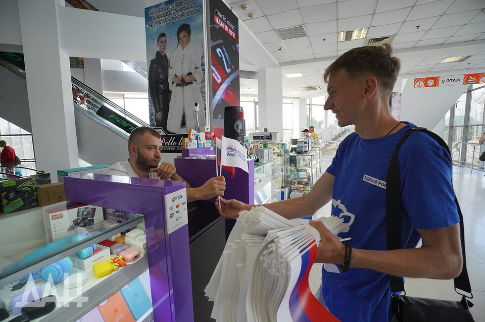По словам собеседницы агентства, всего было вручено 400 флажков, листовок и нашивок с патриотической надписью «Донбасс и Россия — навсегда».