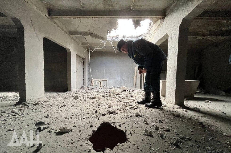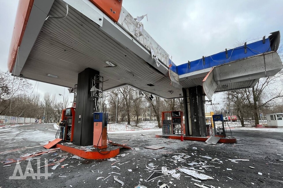 По ул. Университетской, 118 остался неразорвавшийся снаряд. Выявлены попадания в трамвайное полотно, проезжую часть и территорию автозаправочной станции неподалеку от ТЦ «Донецк Сити».