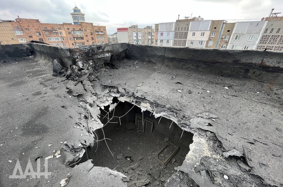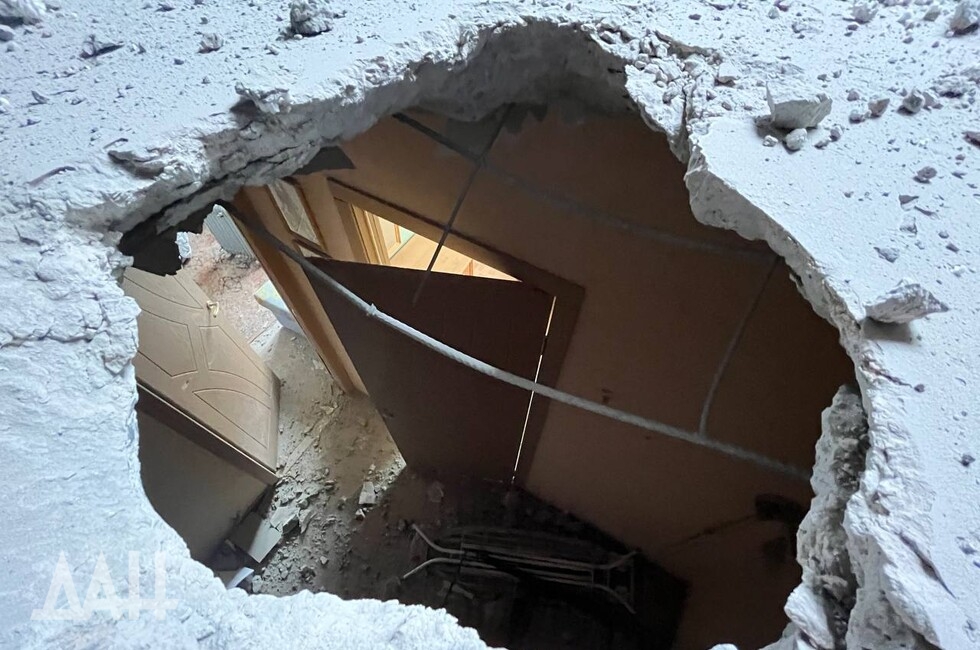 По ул. Челюскинцев реактивный снаряд прошел сквозь кровлю высотки и через чердак пробил потолок квартиры. По сообщению корр. ДАН с места события, хозяев в тот момент дома не было.