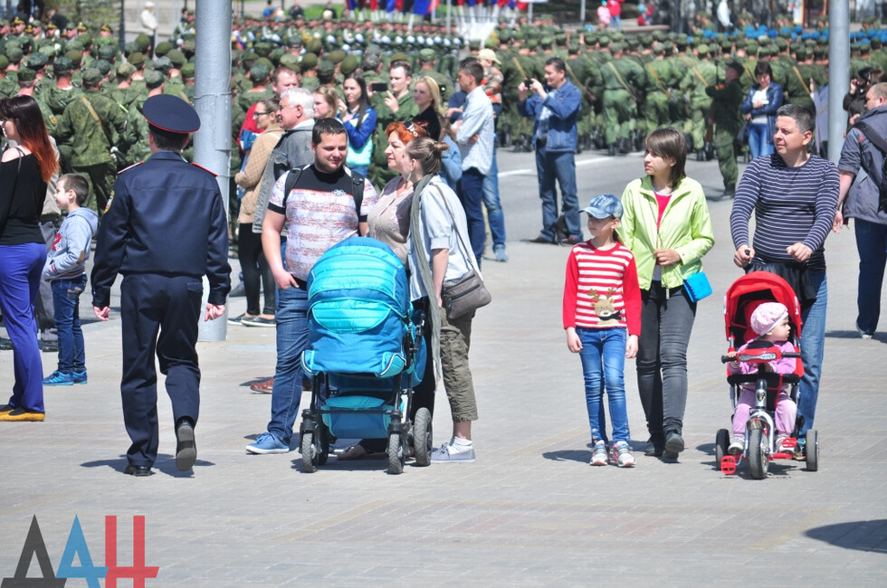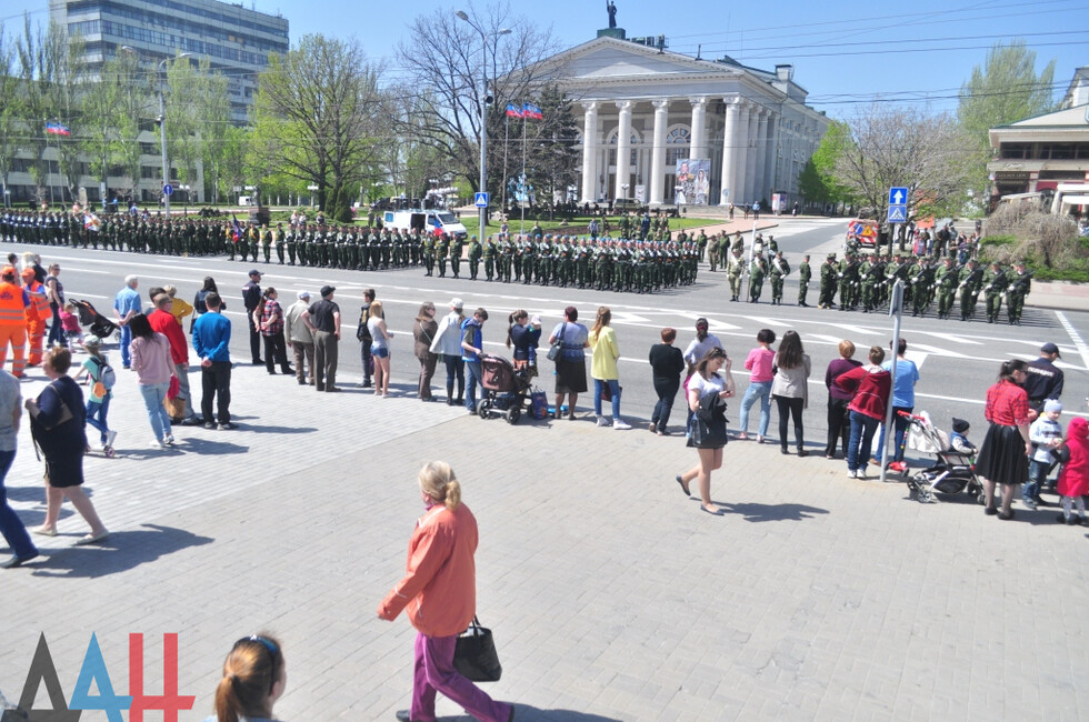 Донецк, 30 апр – корр. ДАН. Репетиция Парада Победы прошла сегодня на площади Ленина в центре столицы ДНР. Количество участников составило 1088 человек.