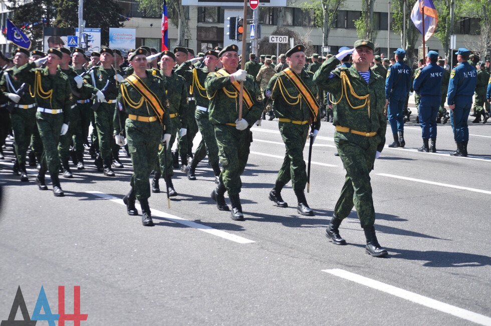 Напомним, что первая в этом году репетиция прохождения парадным строем ко Дню Победы силовых подразделений ДНР прошла в Донецке 24 апреля.