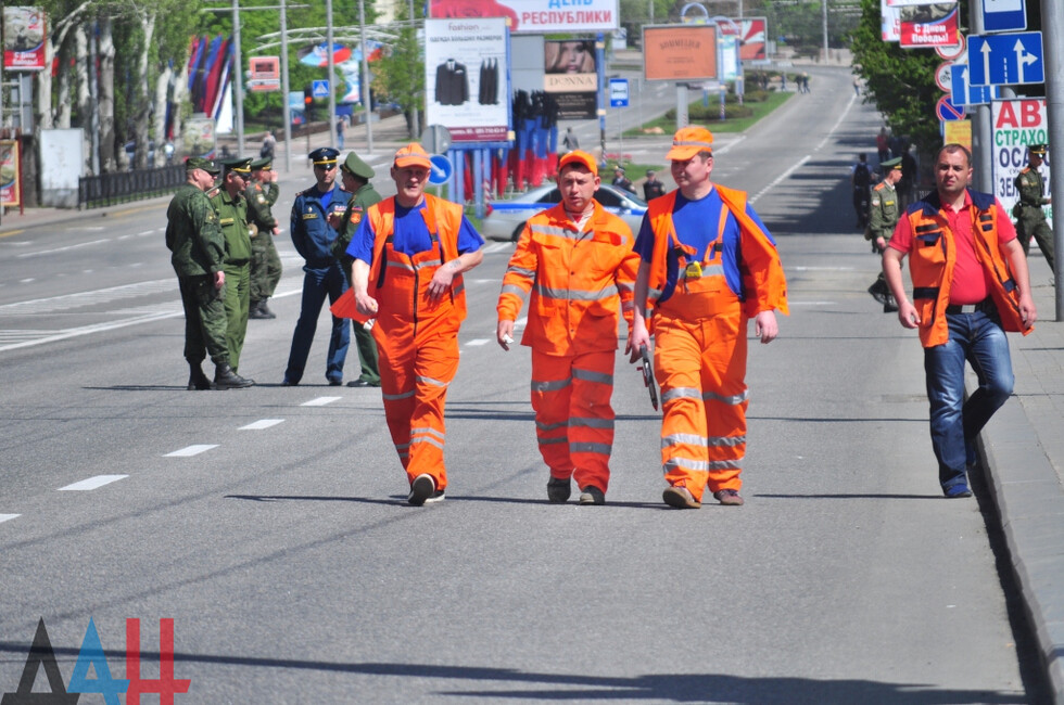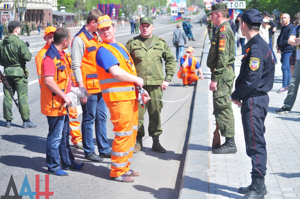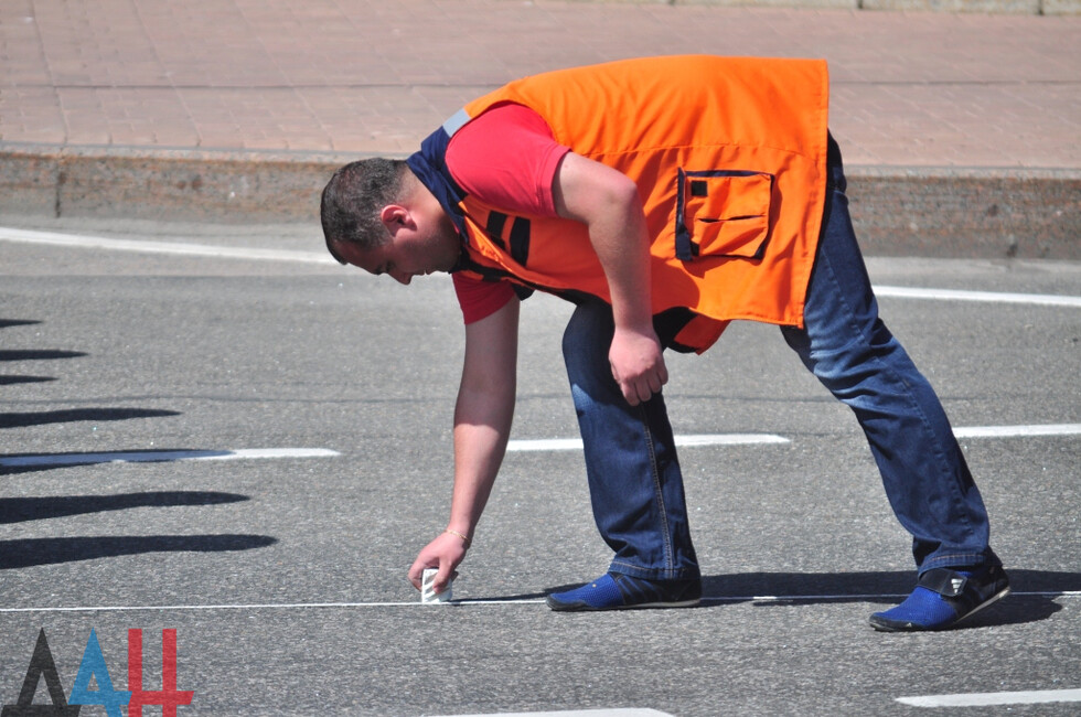 Помощь в проведении тренировок оказали коммунальщики Донецка. В процессе построений они производили необходимые замеры и наносили разметку. За репетицией пришли понаблюдать сотни жителей столицы, многие целыми семьями.