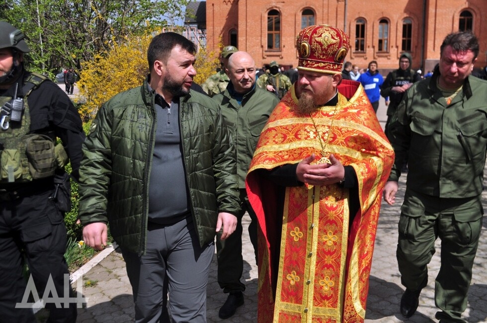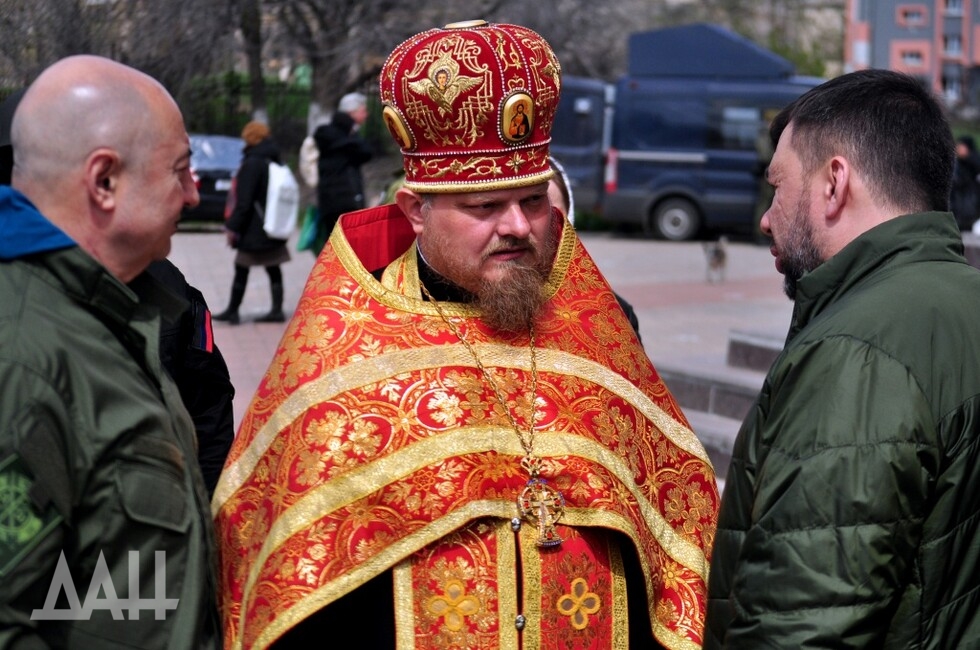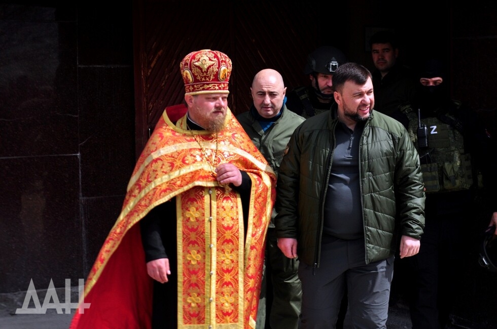 Представители РФ вместе с Главой ДНР Денисом Пушилиным побывали сегодня в мариупольском храме, поставили свечи и приняли участие в освящении куличей.