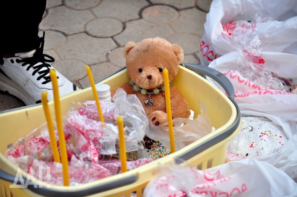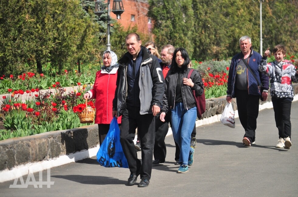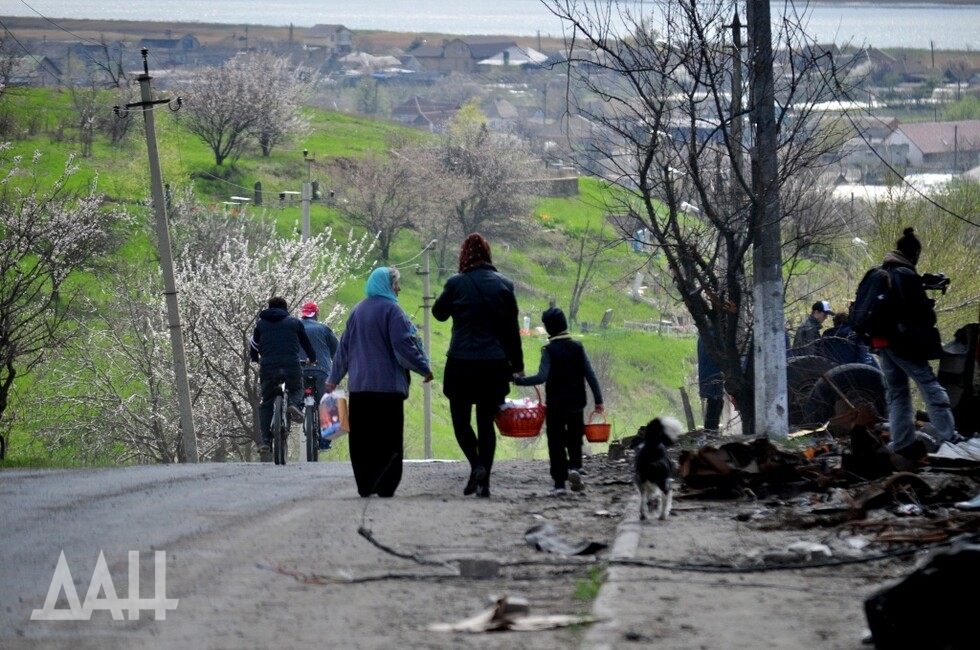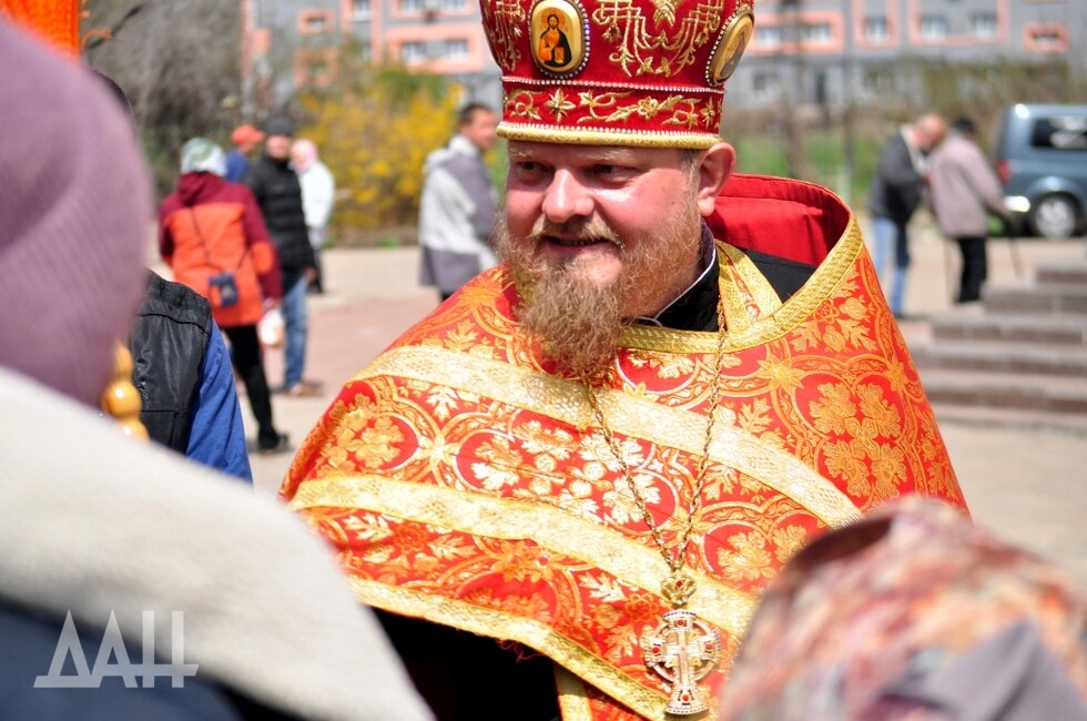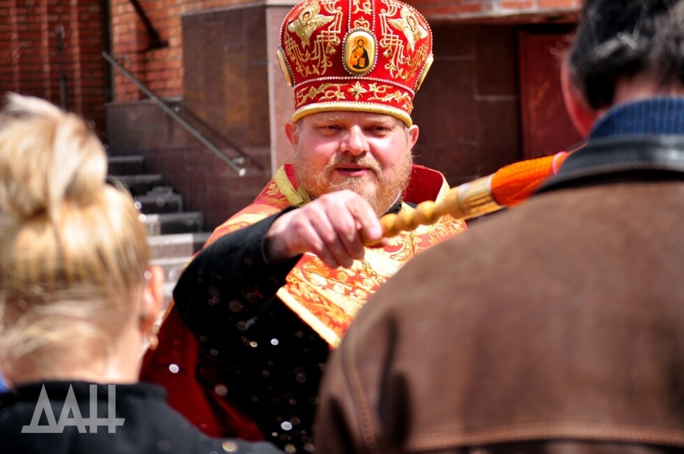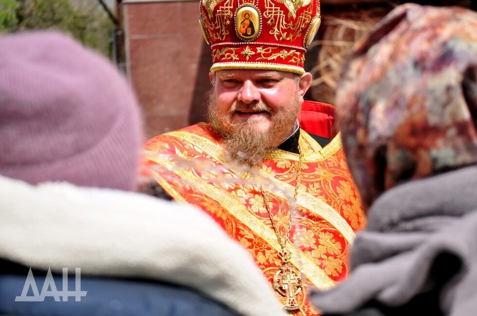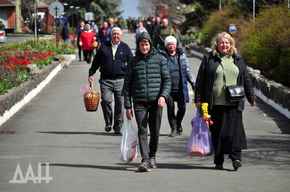 У храма можно было увидеть людей самых разных возрастов – от младенцев, до стариков. Были там и военнослужащие Народной милиции. Надо сказать, что у большинства мариупольцев нет никакой возможности испечь пасхальные куличи, или купить их. Поэтому на территории храма паски раздавались бесплатно. Их доставила делегация из России.