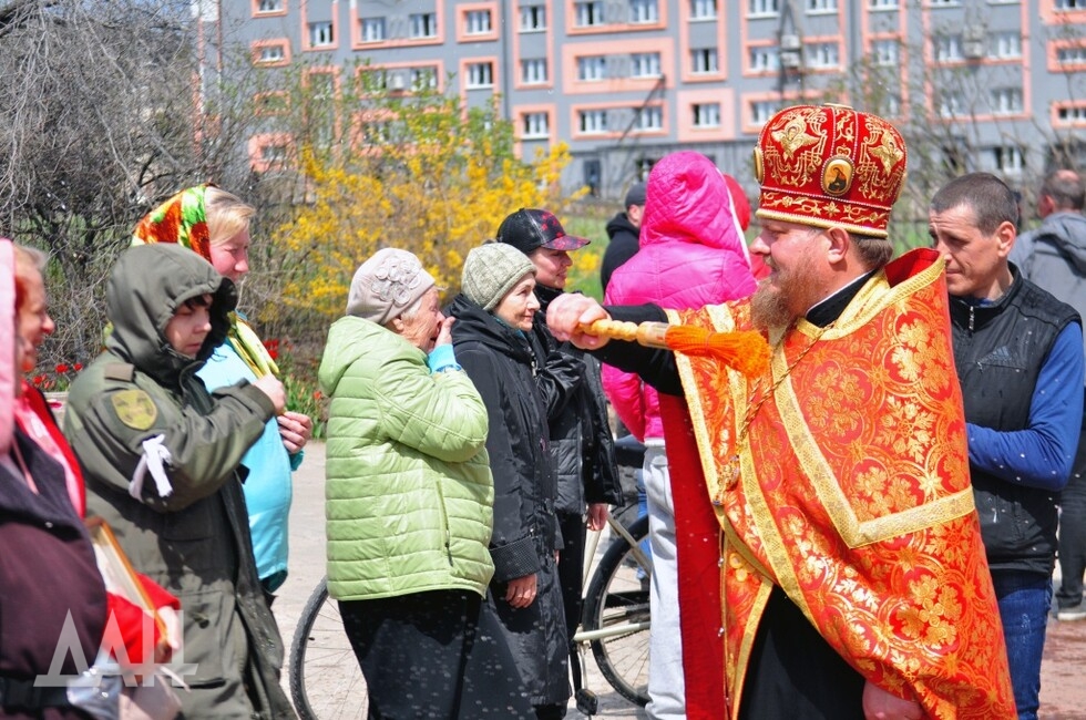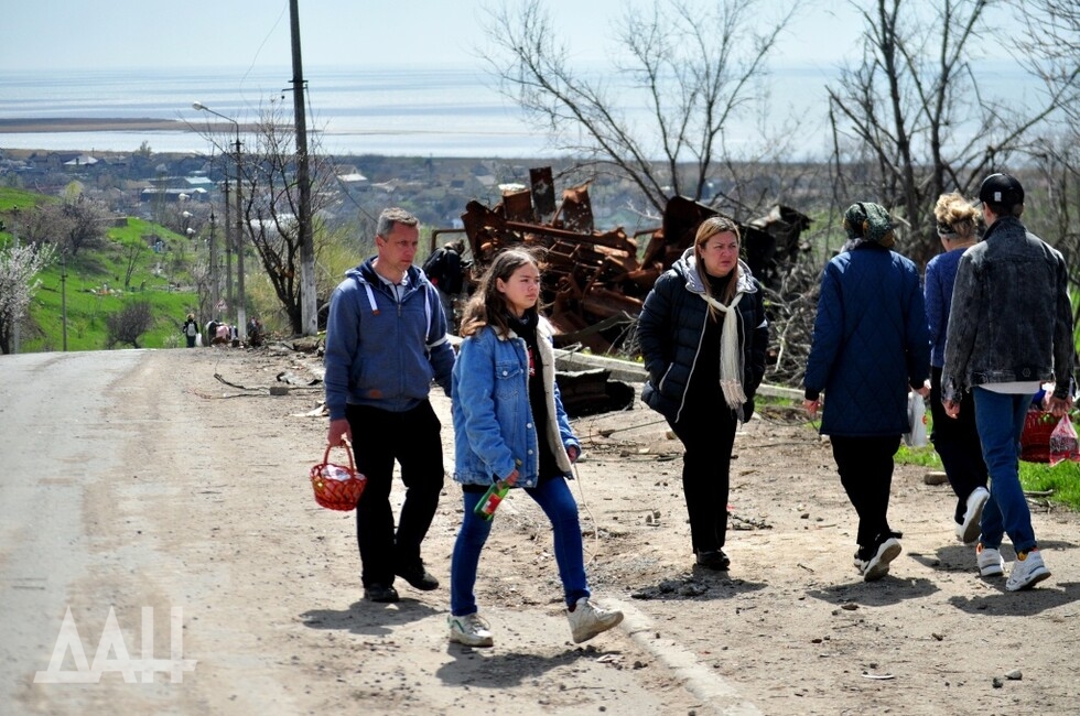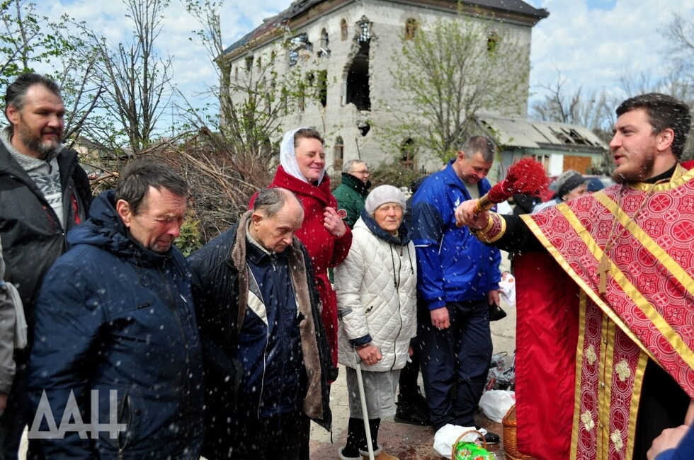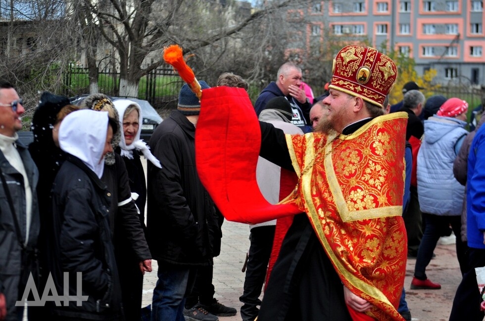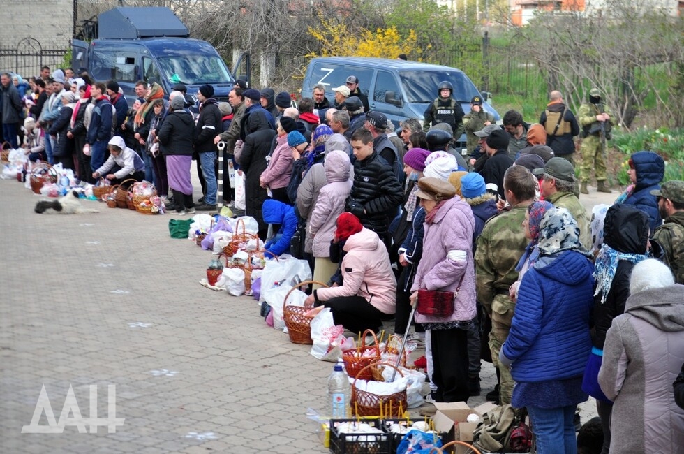 Донецк, 24 апр – корр. ДАН. Освобождение Мариуполя силами Русской коалиции подходит к концу, и со стороны металлургического комбината «Азовсталь», где заблокированы украинские боевики, еще продолжают раздаваться взрывы. Но тысячи жителей Левобережного района города пришли сегодня к собору Архистратига Божия Михаила на богослужение и освящение пасхальных куличей в православный праздник Светлого Воскресения Христова.