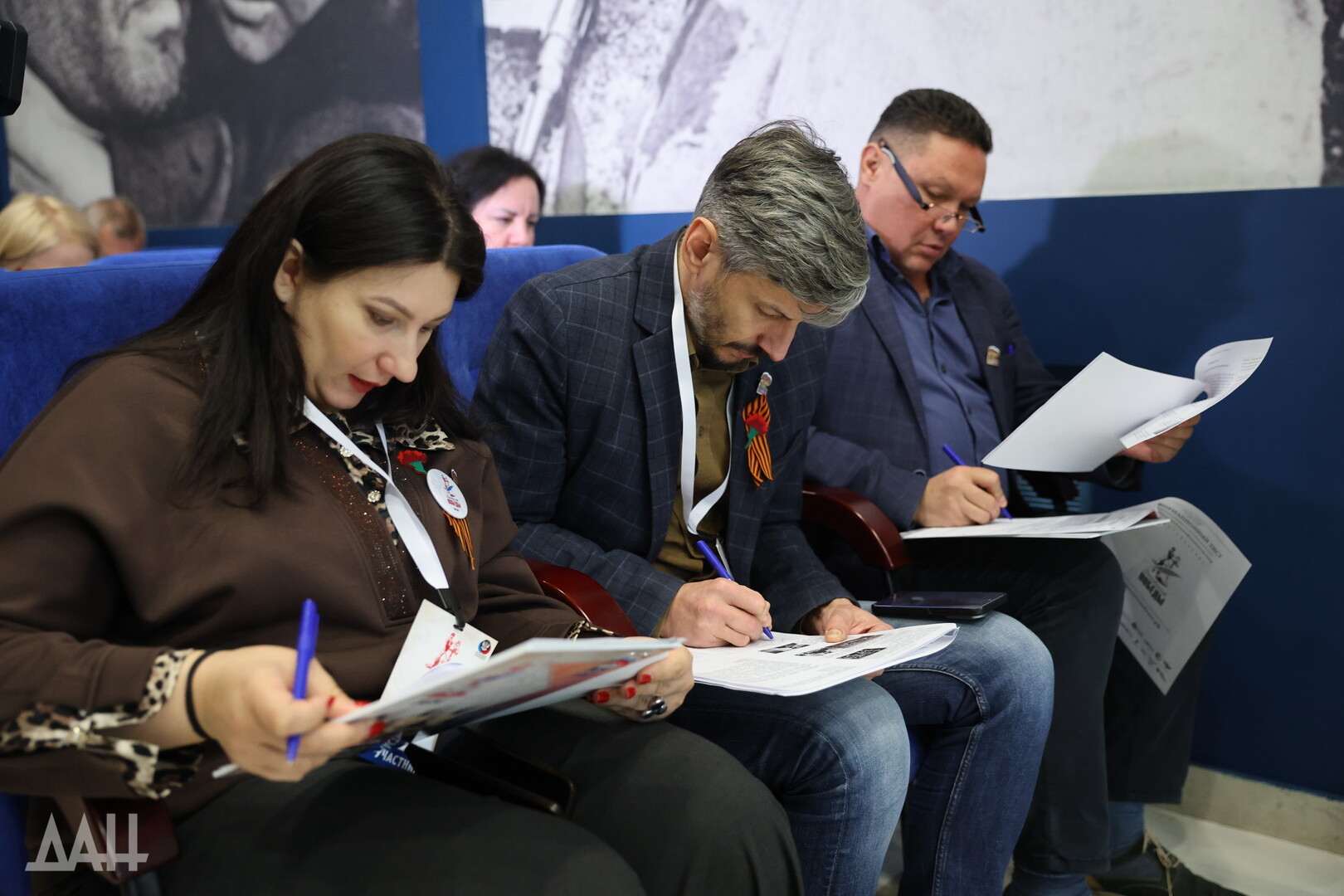 Главной площадкой акции в ДНР стал музей Великой Отечественной войны. В написании диктанта участвовали депутаты Народного Совета ДНР, министры, сторонники партии «Единая Россия», активисты молодежных организаций, молодогвардейцы, представители Следственного комитета России и воспитанники кадетского корпуса имени А. В. Захарченко.