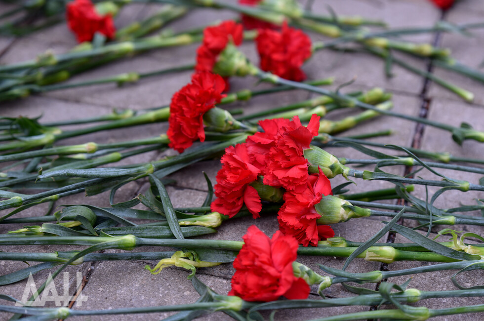 У стелы замечены представители общественности: ОД «Донецкая Республика» и ОО «Молодая Республика».