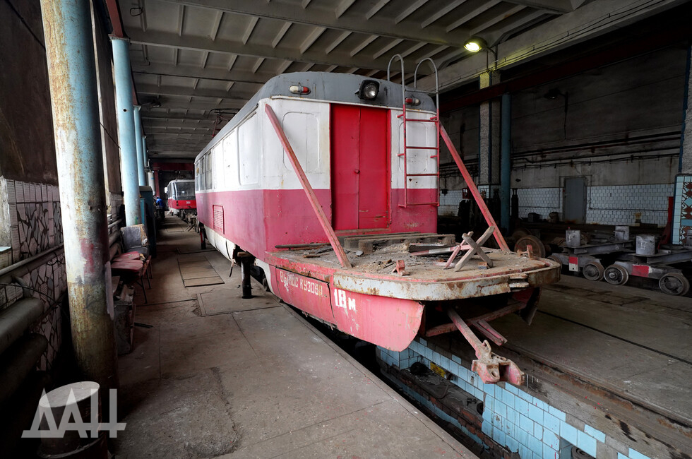 Когда-то все эти трамваи были пассажирскими, но по истечению срока эксплуатации переоборудованы для служебных нужд, в салонах даже остались винтажные плафоны 50-х годов.