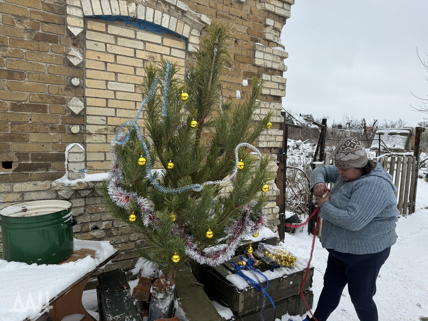 Донецк, 30 дек — ДАН. Журналисты привезли елку Галине Невинной — единственной оставшейся жительнице Марьинки. Среди них был и корреспондент ДАН.
