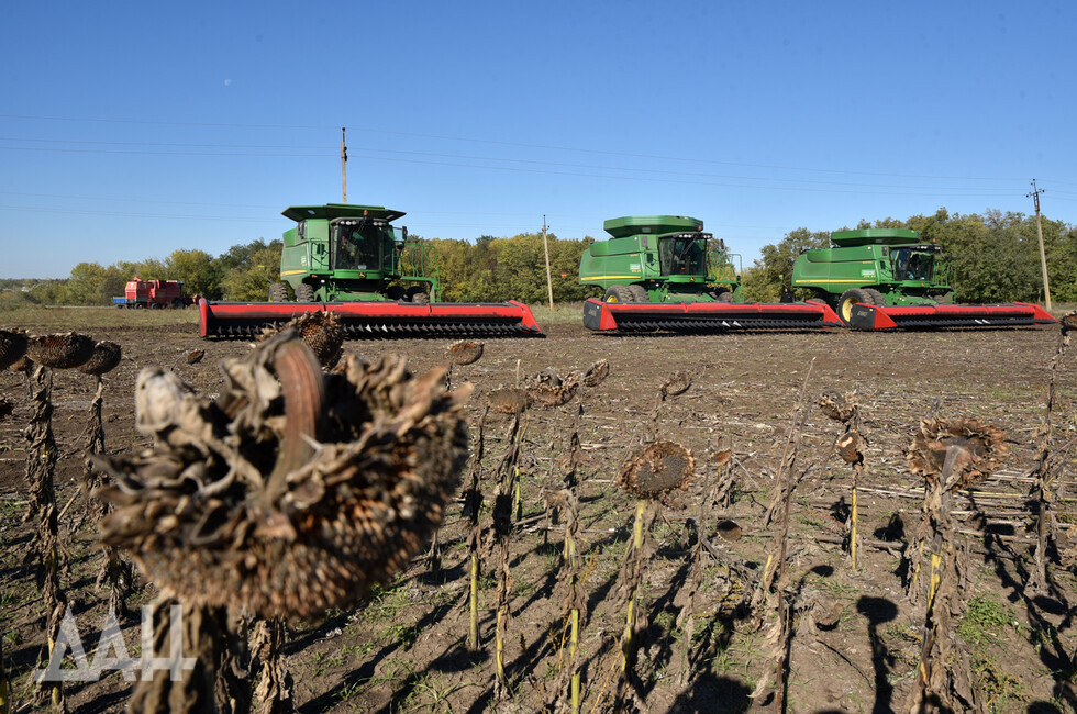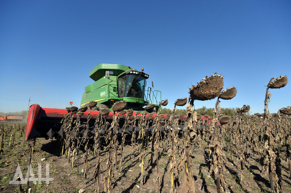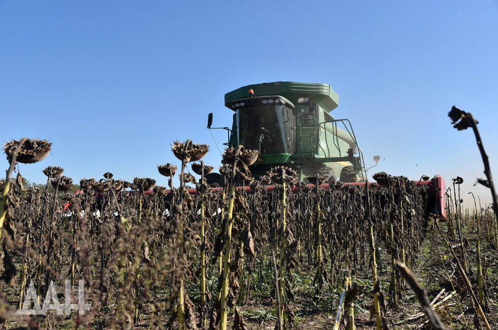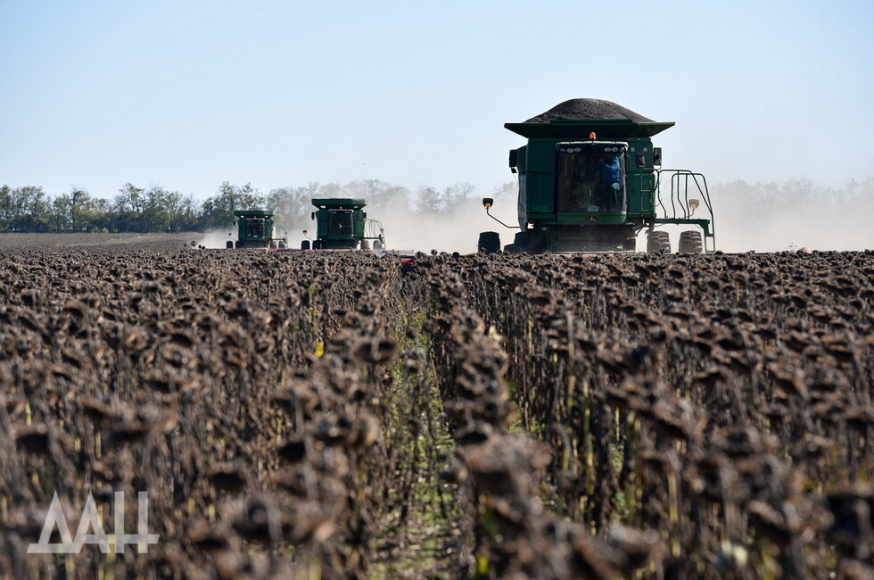 Старченково (Володарский район), 15 окт — корр. ДАН. Специалисты государственной корпорации «Аграрный Донбасс» сегодня вышли на уборку урожая подсолнечника в освобожденном Володарском районе ДНР. Корреспонденты ДАН побывали на уборке и посмотрели на работу республиканских аграриев.