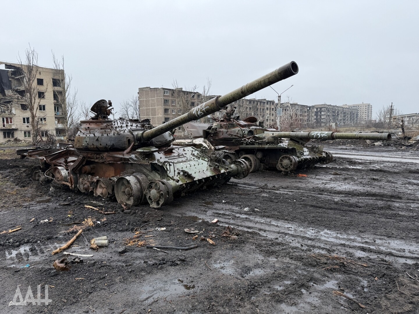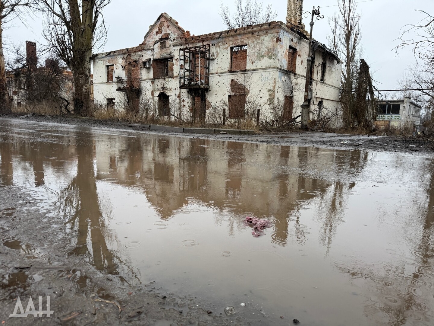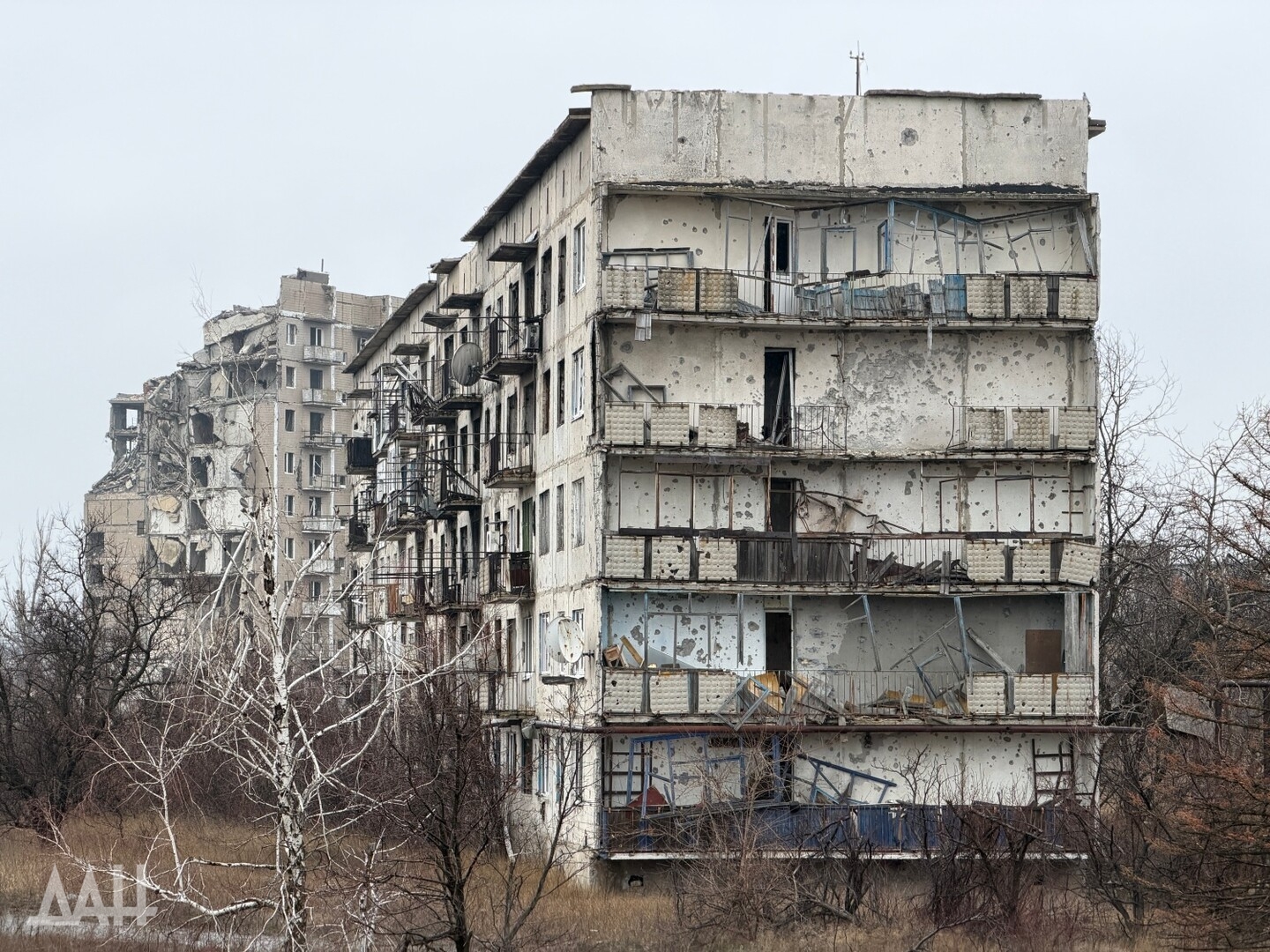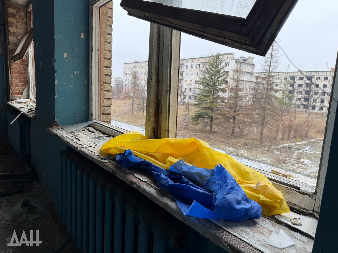 Повсюду здесь следы ожесточенных боев: изрешеченные осколками фасады многоэтажек, сгоревшие остовы автомобилей, брошенная военная техника — все еще хранит воспоминания тяжелых месяцев огня. А вот и местная школа, где от окон остались лишь пустые проемы, а полы покрыты слоем битого стекла и строительной пыли.