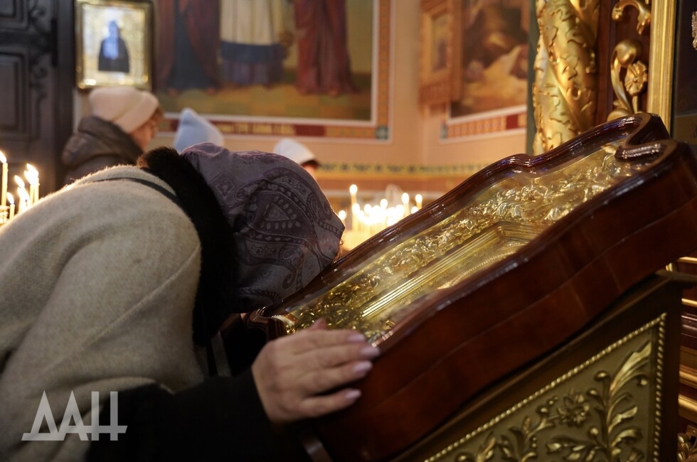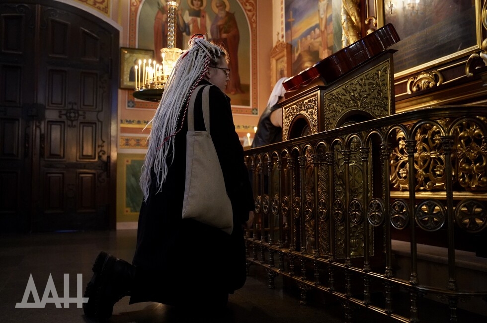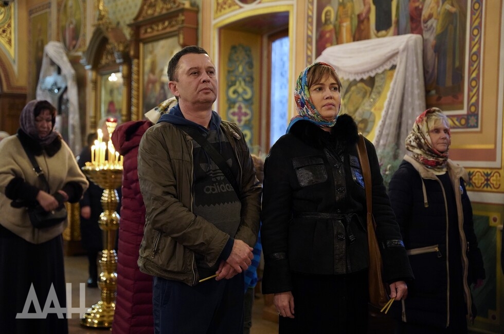 Людей в храме немного. Оно и понятно: хоть обстрелов сегодня относительно немного, но ситуация напряженная — противник может ударить в любой момент. Для украинских боевиков нет ничего святого — дончане за время конфликта в Донбассе привыкли, что больше всего провокаций со стороны ВСУ в православные праздники.